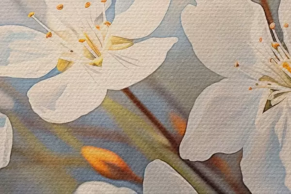 Nuotrauka Akvarelės stiliaus balti tekstūruoti vyšnių žiedai, subtilūs žiedlapiai, pavasario sezonas Nr r44859