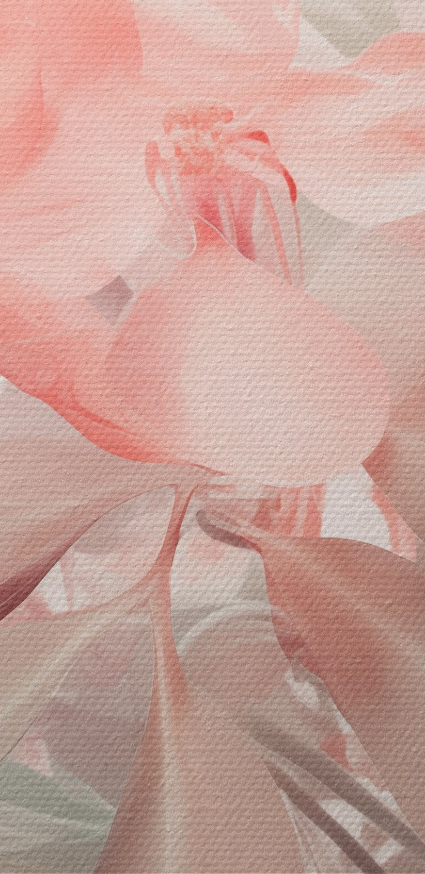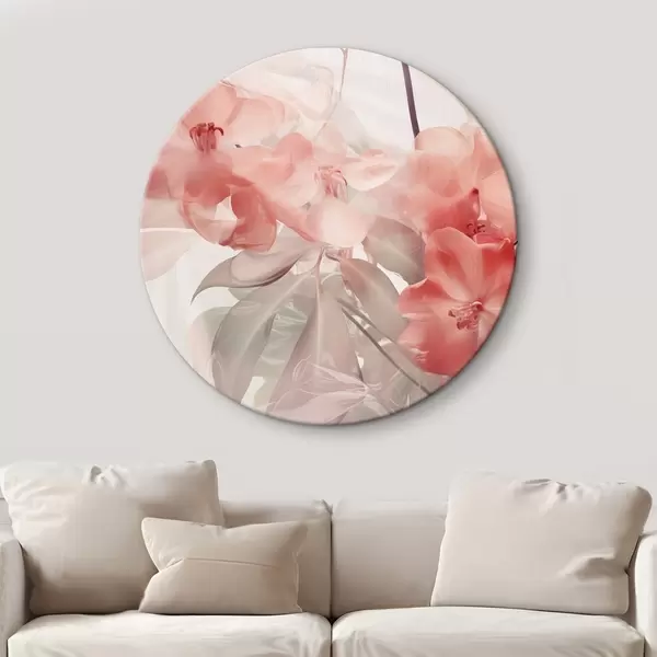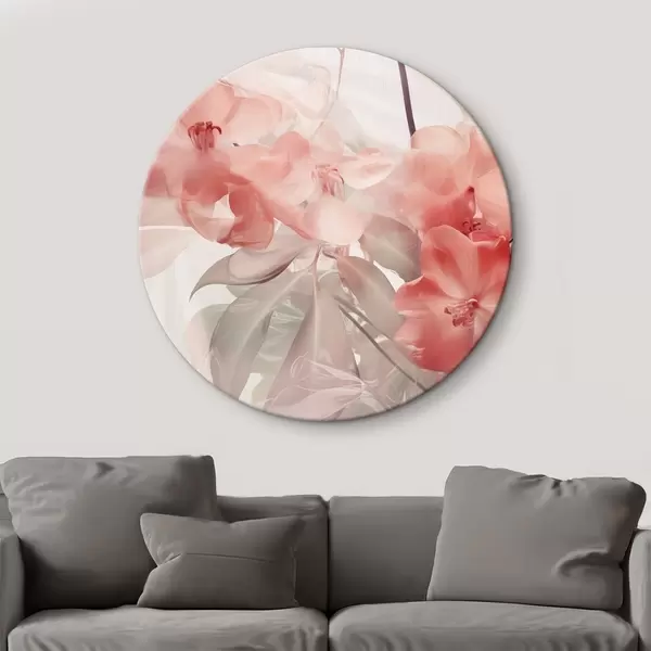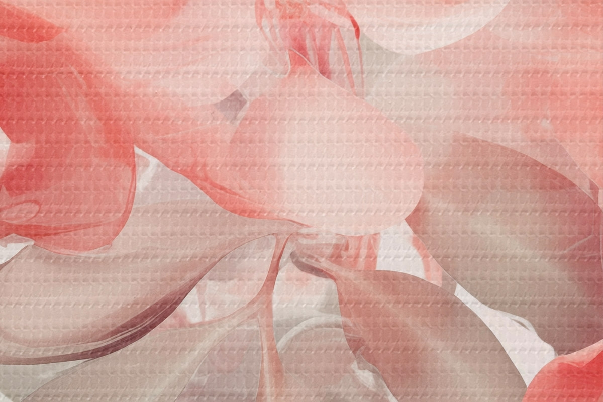 Nuotrauka Ryškios rožinės atogrąžų gėlės su švelniais, prislopintais žaliais lapais sukuria svajingai subtilią tekstūrą Nr r44861