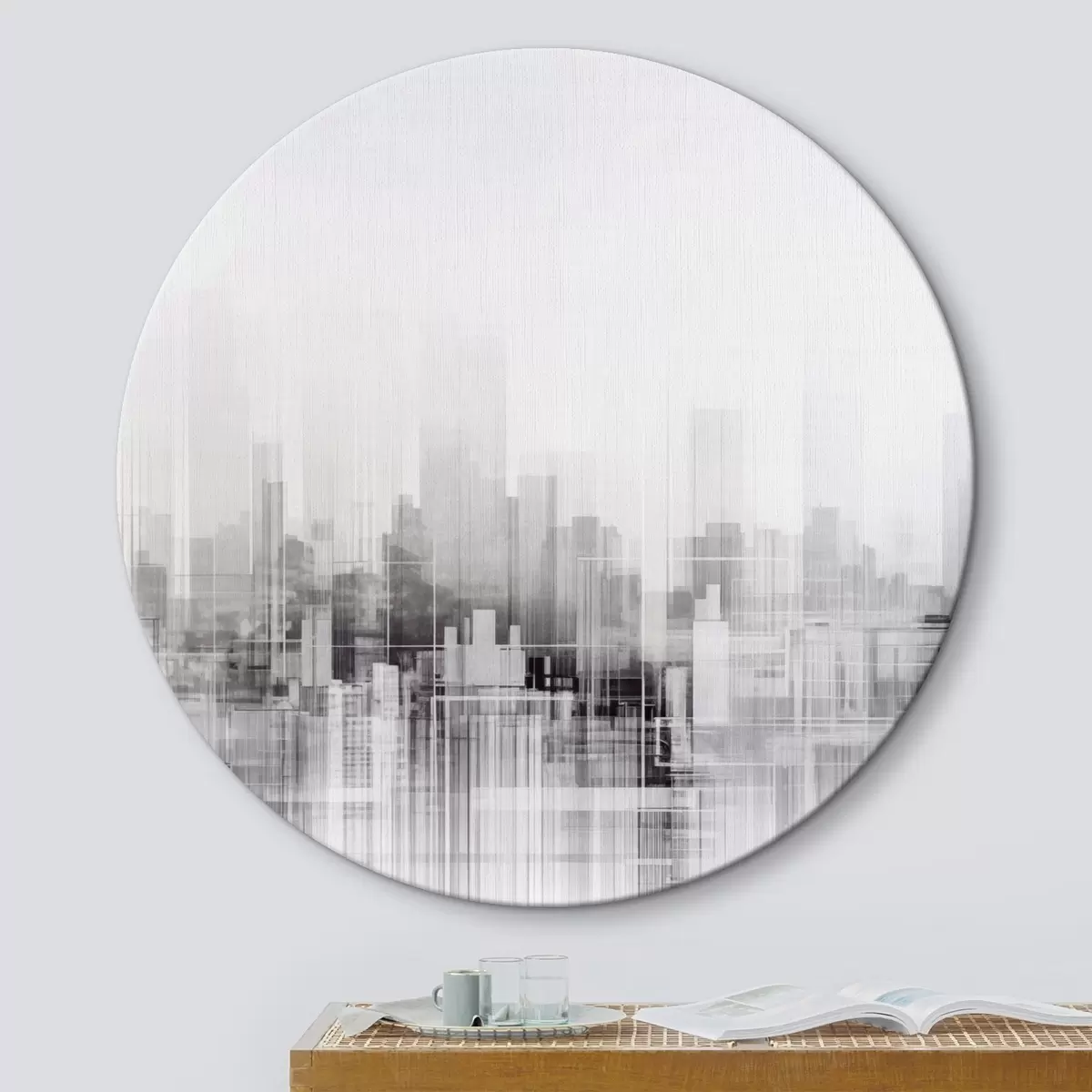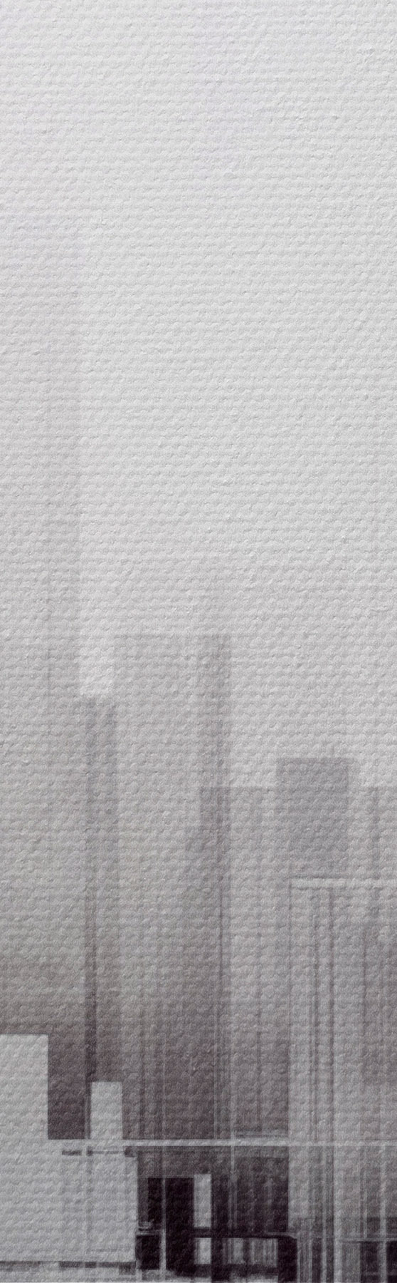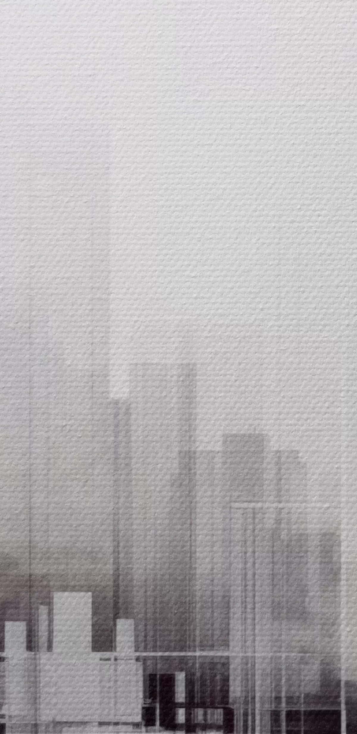 Nuotrauka Tekstūrinis minimalistinis miesto peizažas su aukštais pastatais ir dangoraižiais, kurių siluetai išryškėja balto dangaus fone Nr r44863