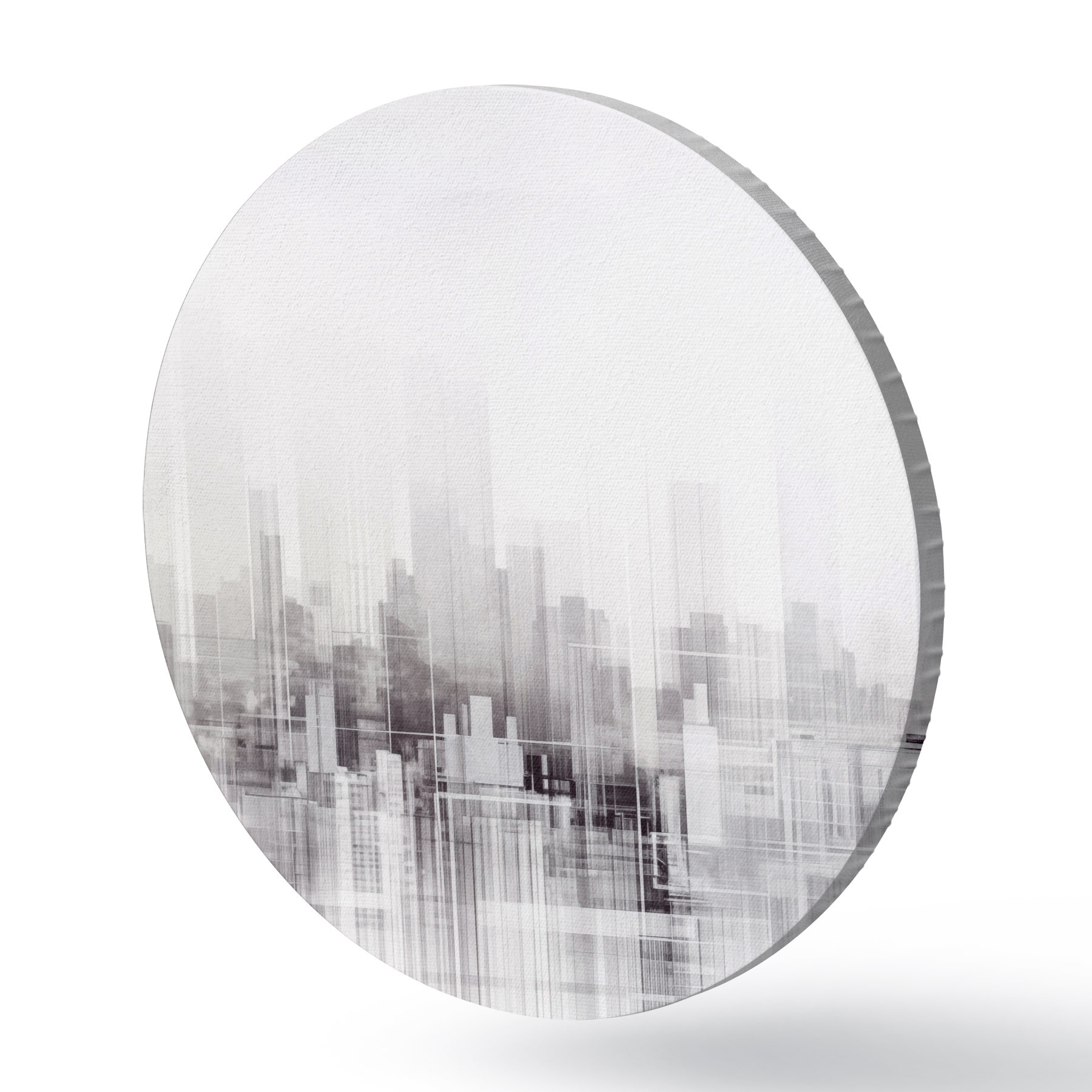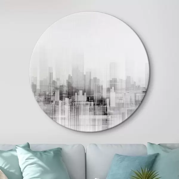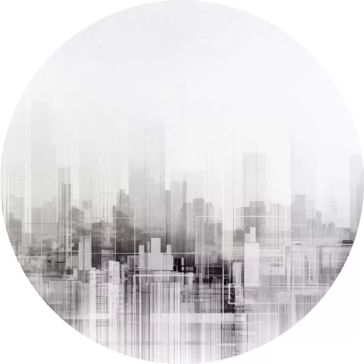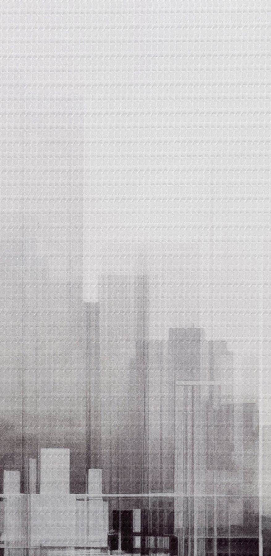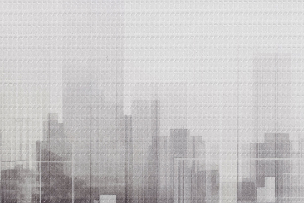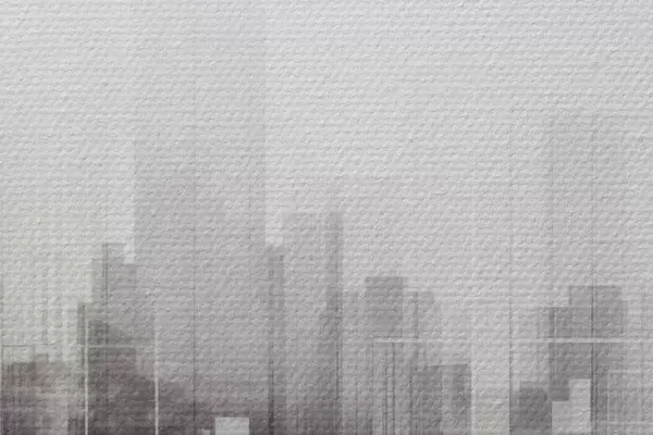 Nuotrauka Tekstūrinis minimalistinis miesto peizažas su aukštais pastatais ir dangoraižiais, kurių siluetai išryškėja balto dangaus fone Nr r44863