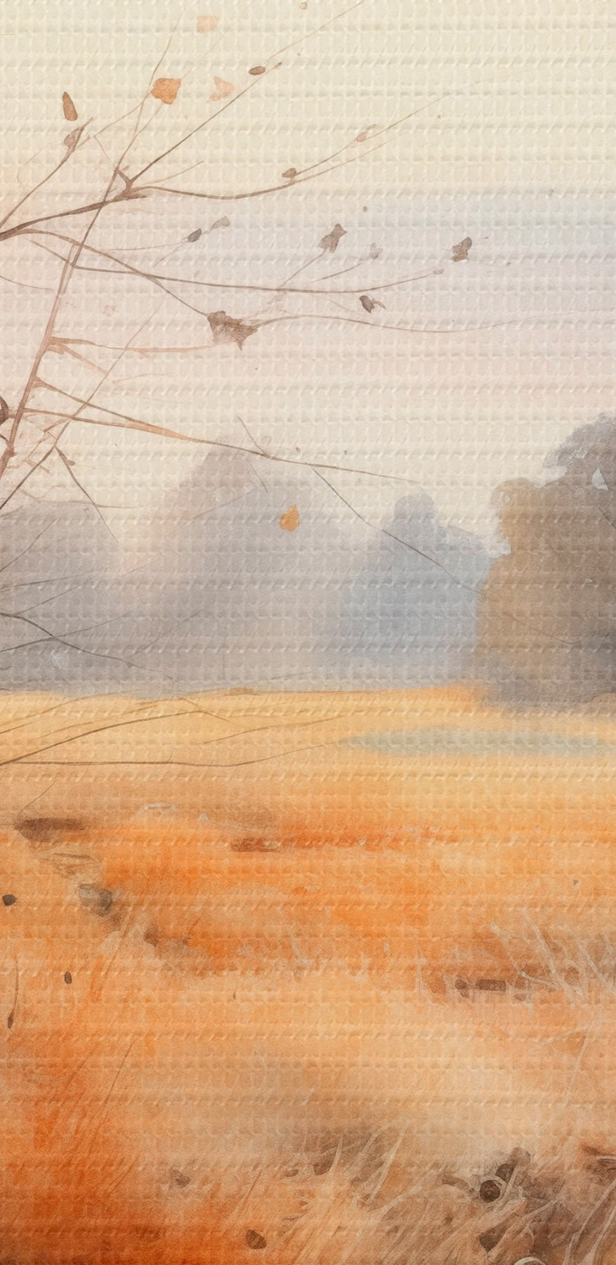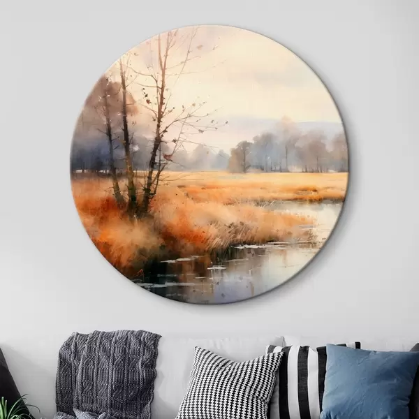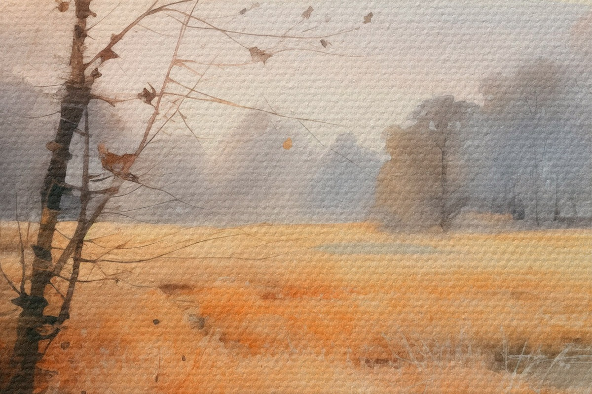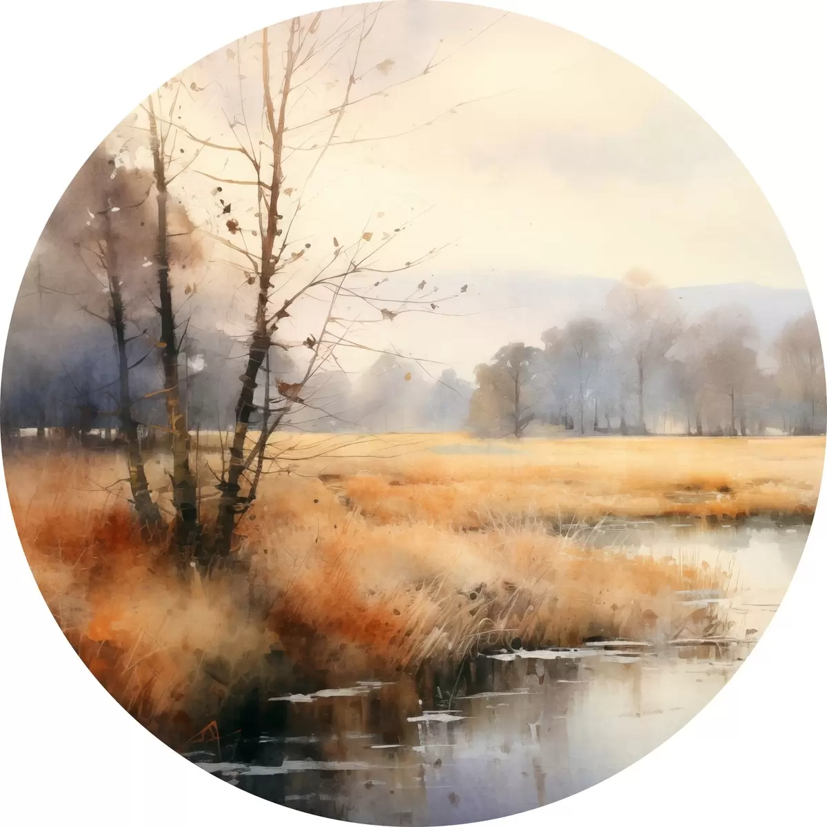 Nuotrauka Ramus faktūrinis peizažas, imituojantis nendres ir plikus medžius, ramų vandenį po dangumi Nr r44867
