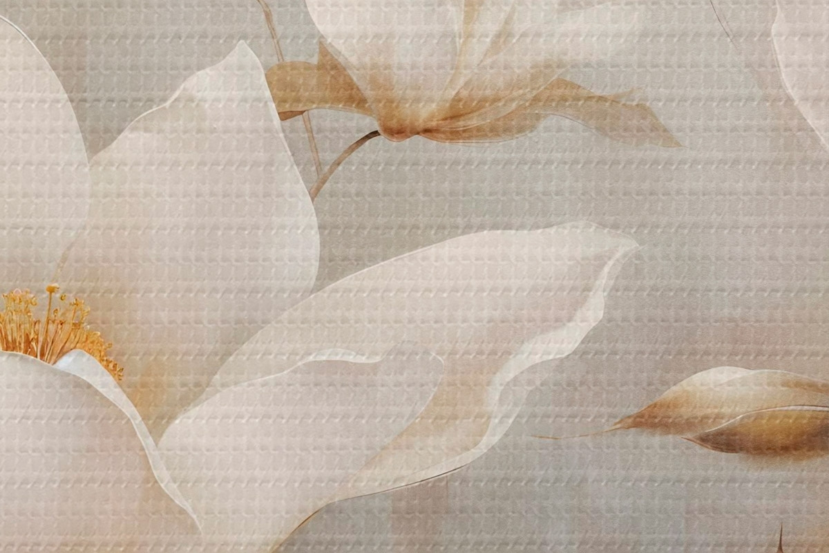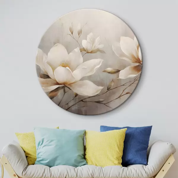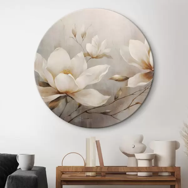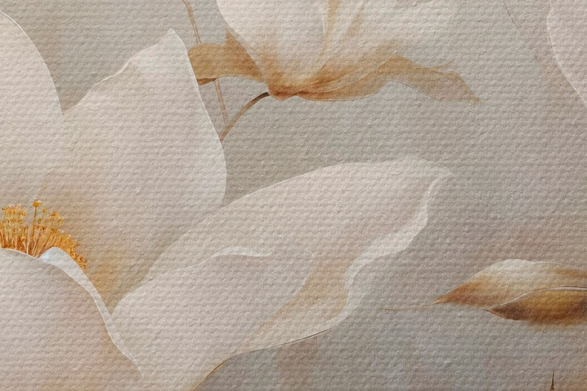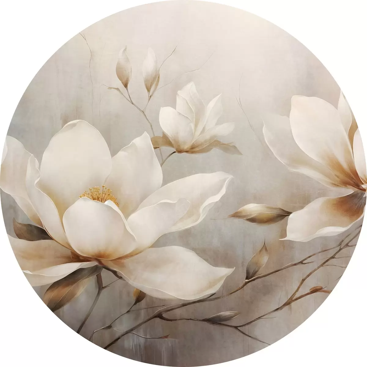 Nuotrauka Tekstūruotos senovinės baltos magnolijos gėlės ant šakų šviesiai rudame fone Nr r44869