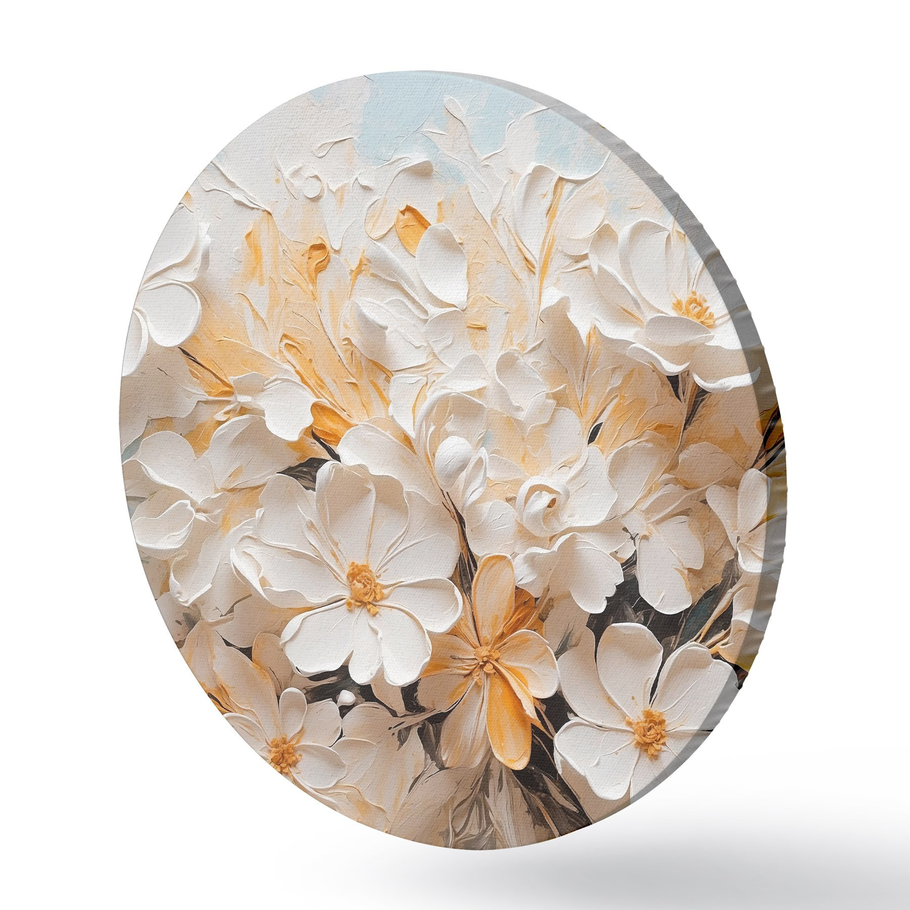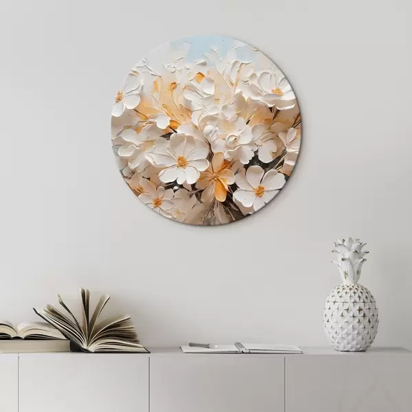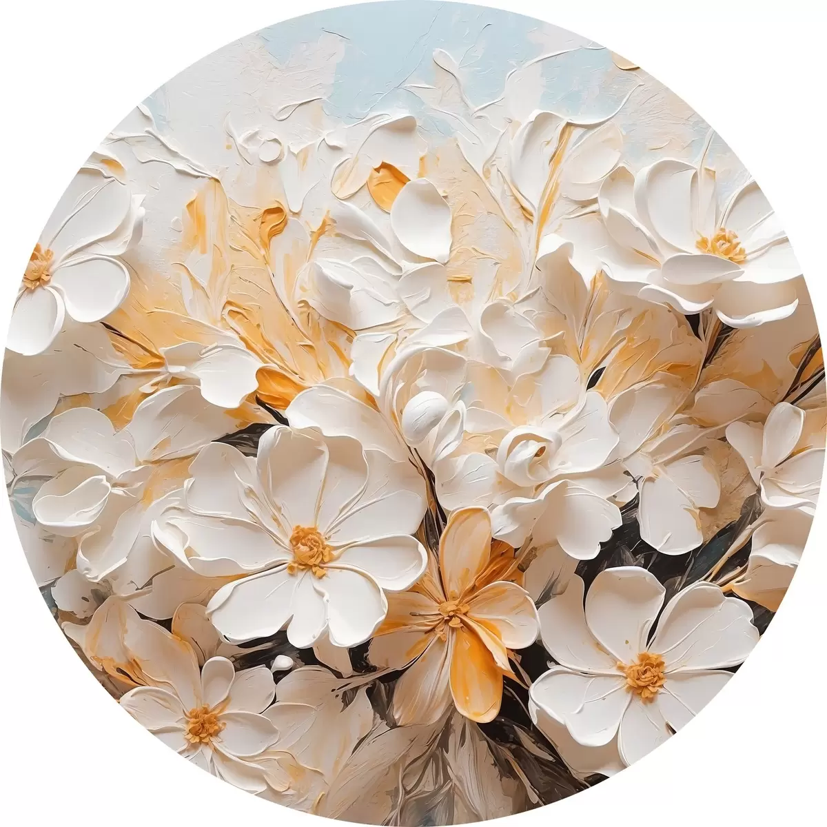 Nuotrauka Baltos ir persikinės gėlės mėlyname fone su pastelinėmis spalvomis Nr r44879