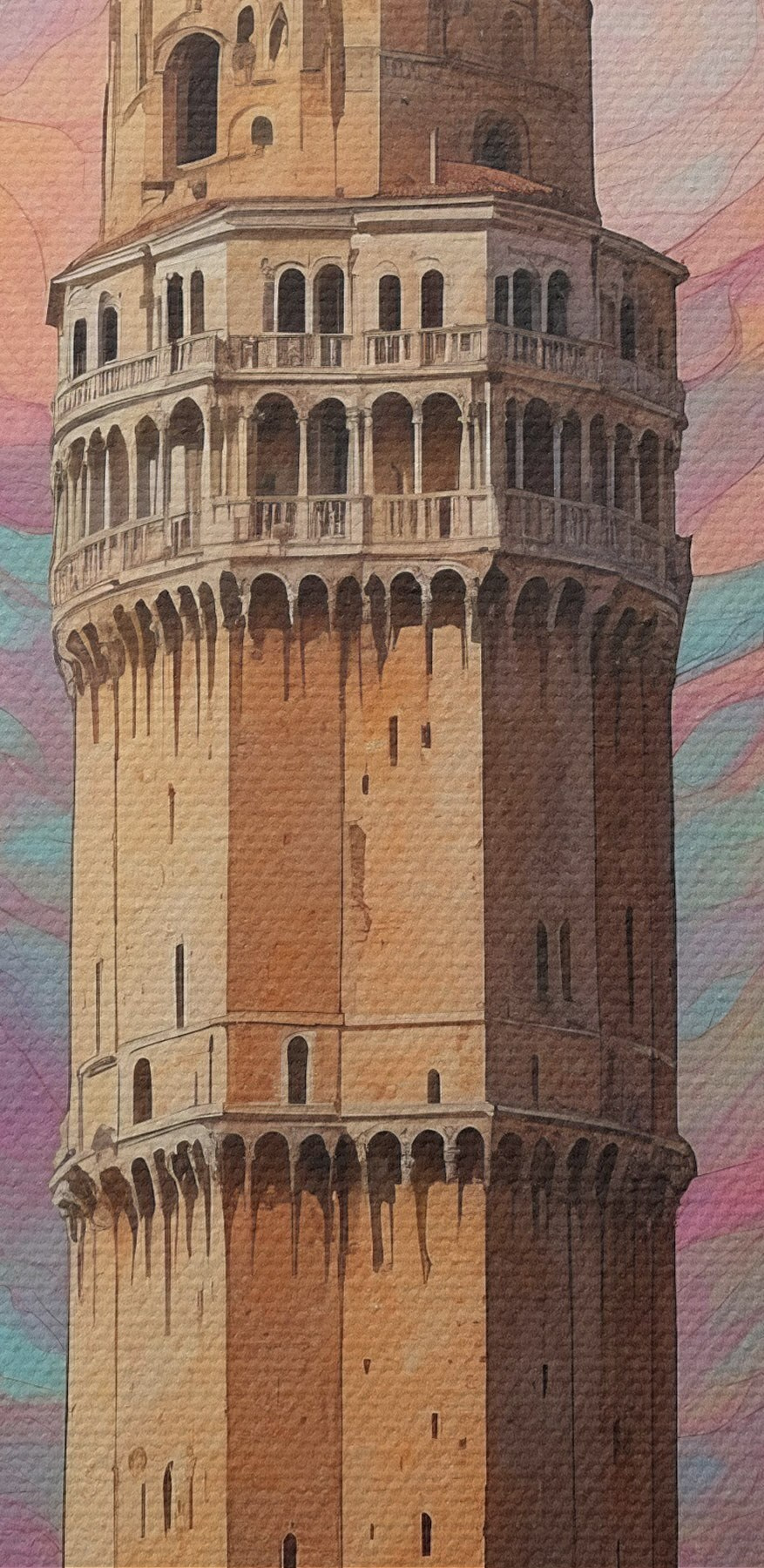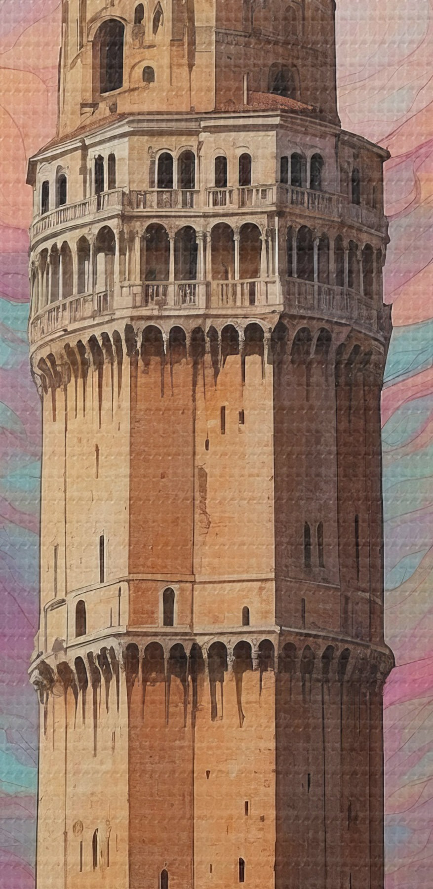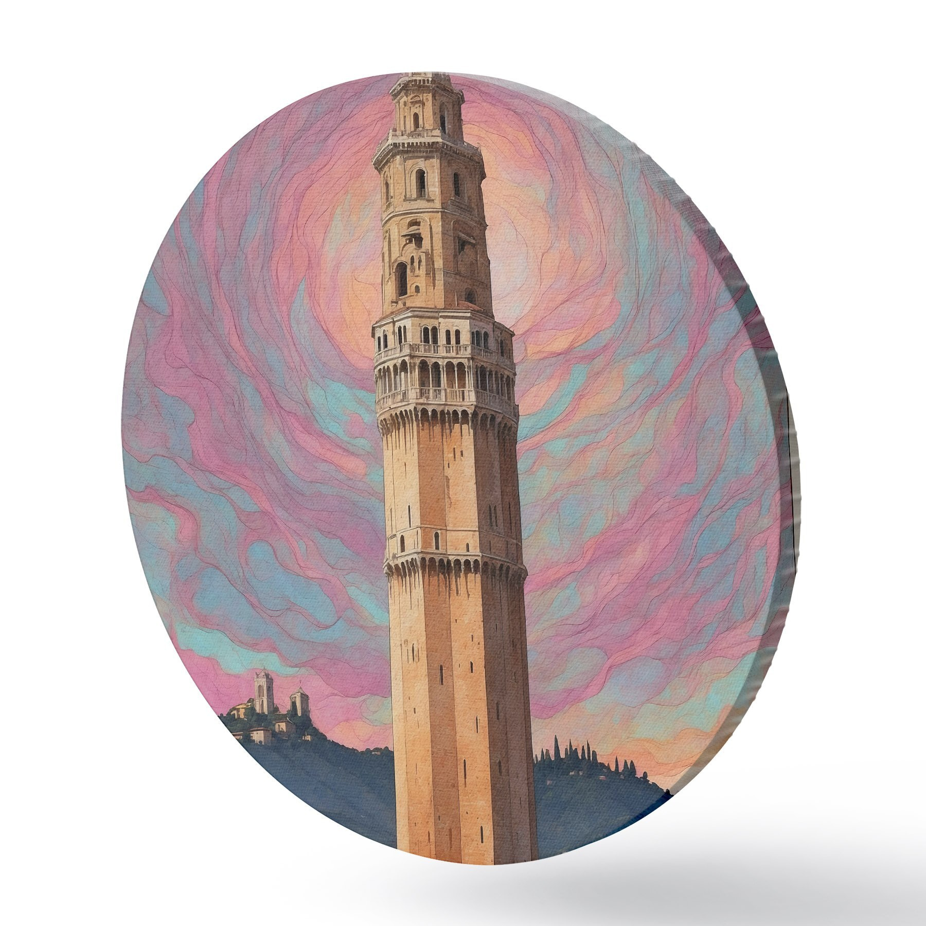 Nuotrauka Fantazijos bokštas su rausvomis ir mėlynomis spiralėmis dangaus fone Nr r44885