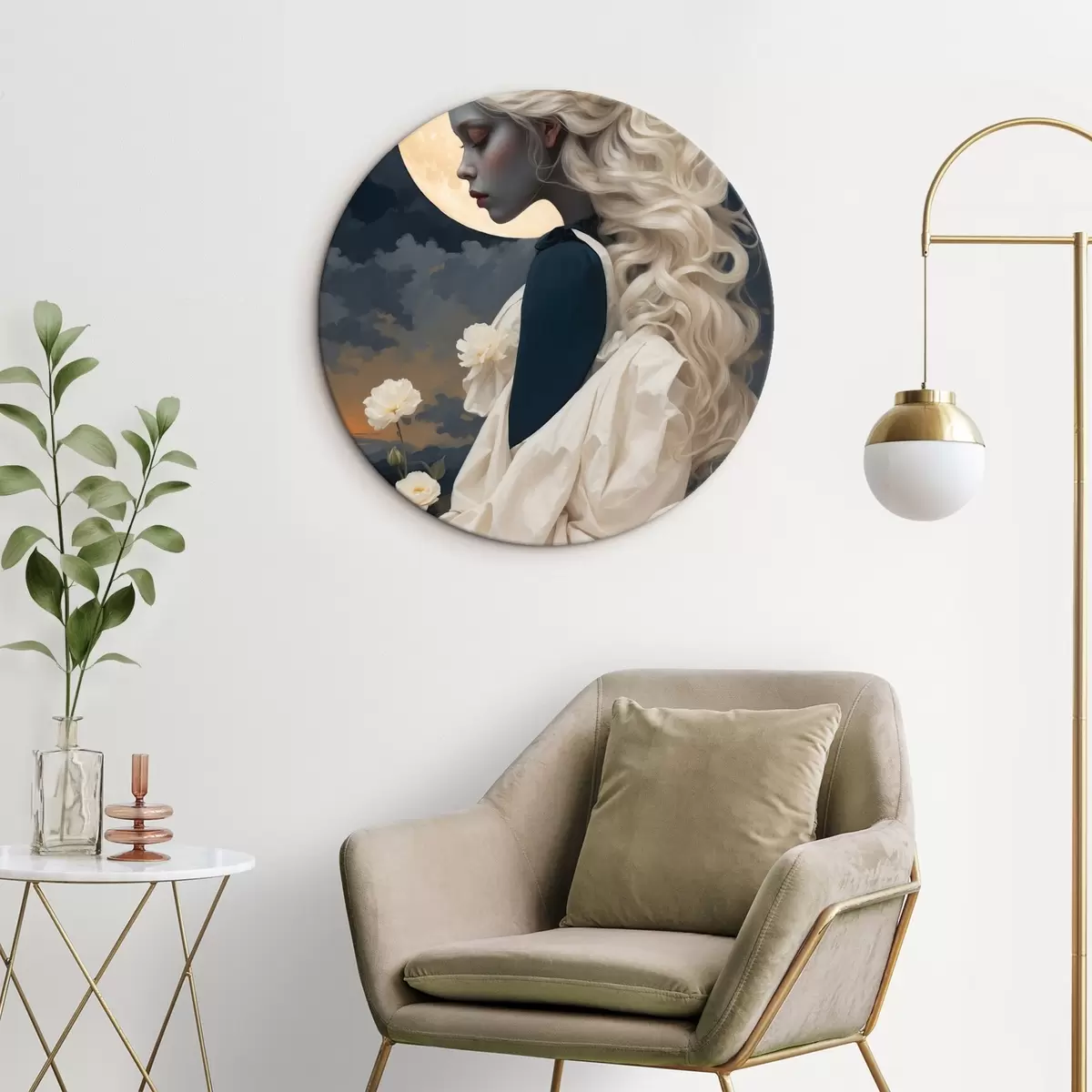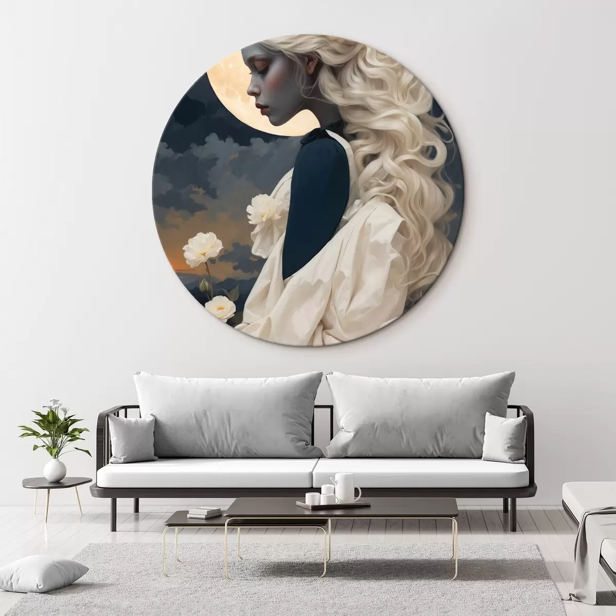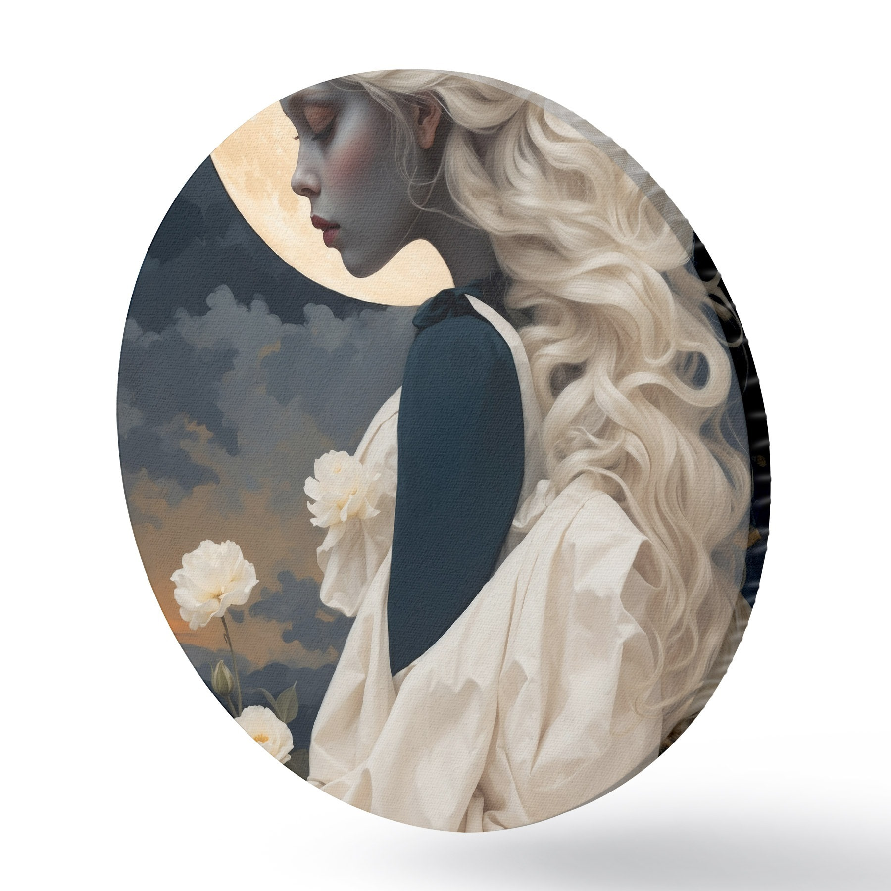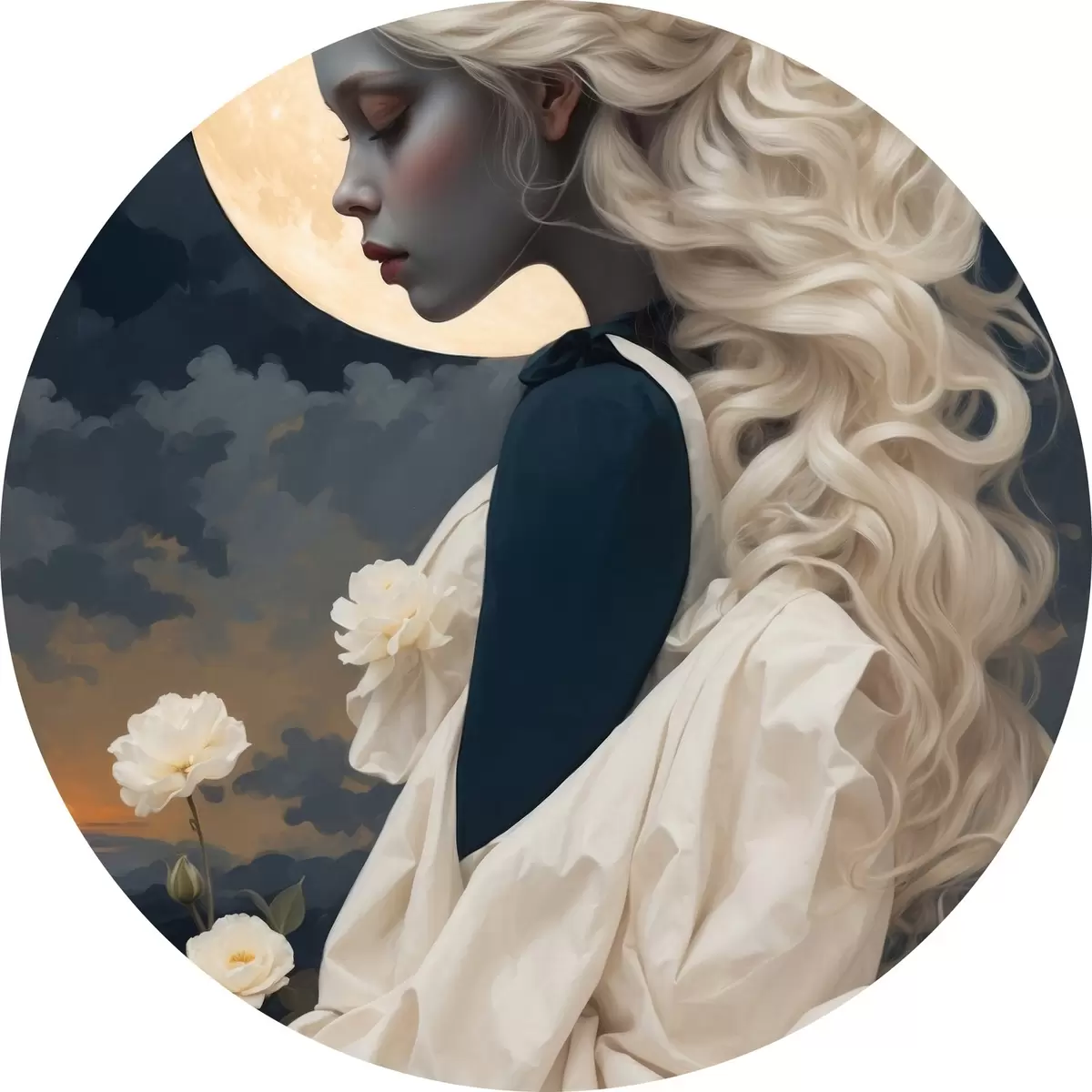 Nuotrauka Mergaitės portretas su baltais plaukais ir mėnulio pilnatimi Nr r44887