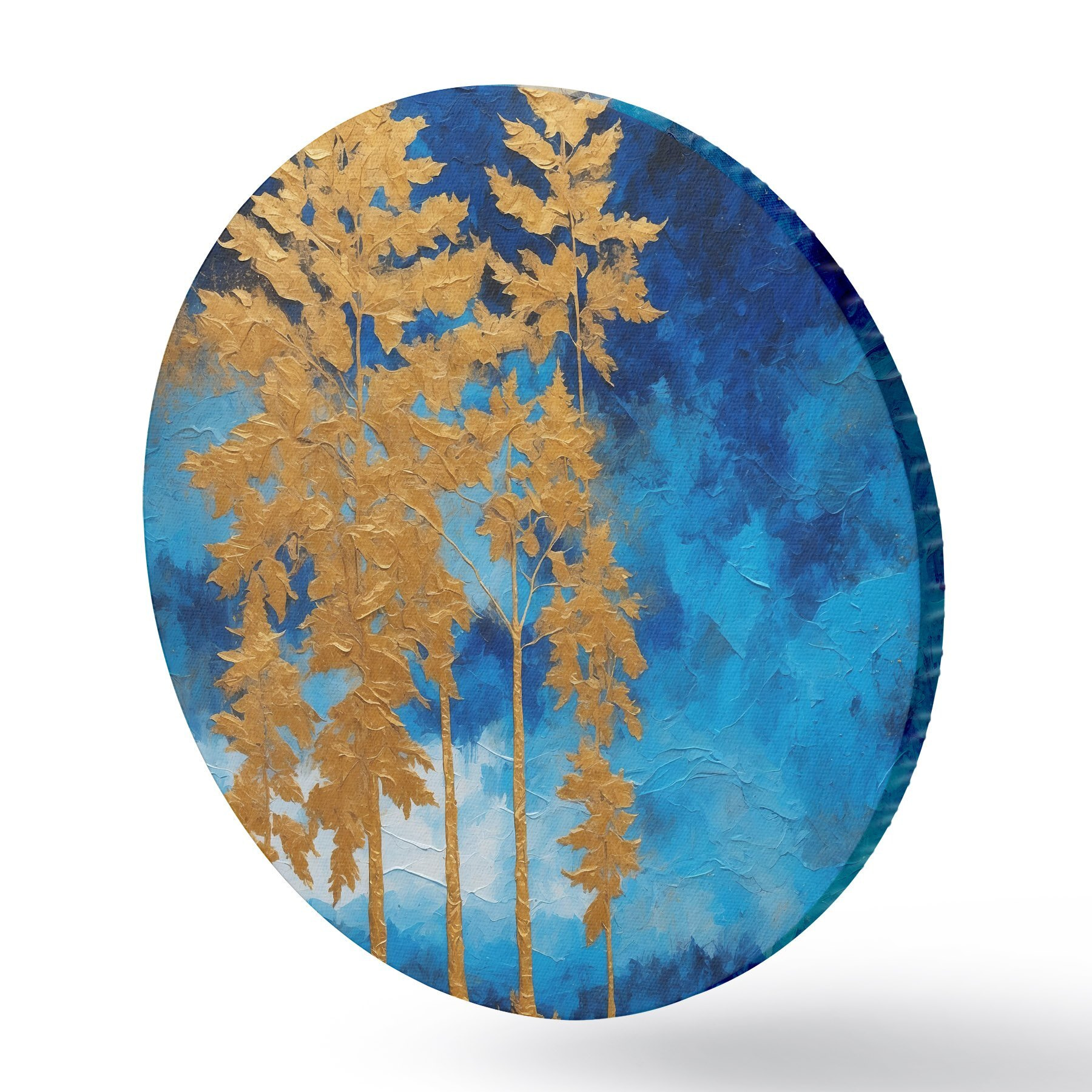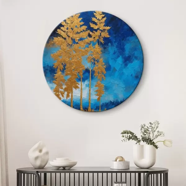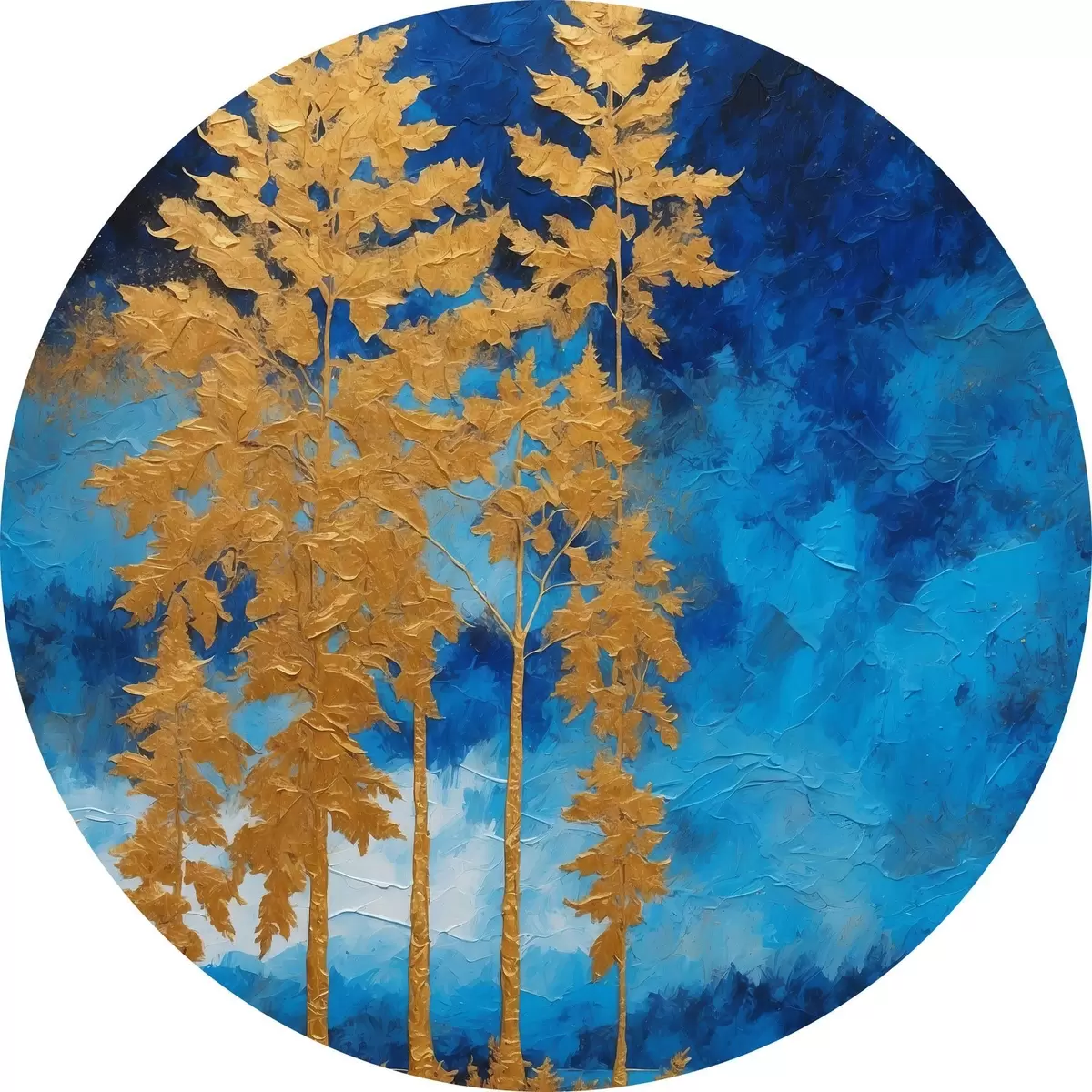 Apvalūs paveikslai Medžiai nakties dangaus fone mėlynais tonais r44888