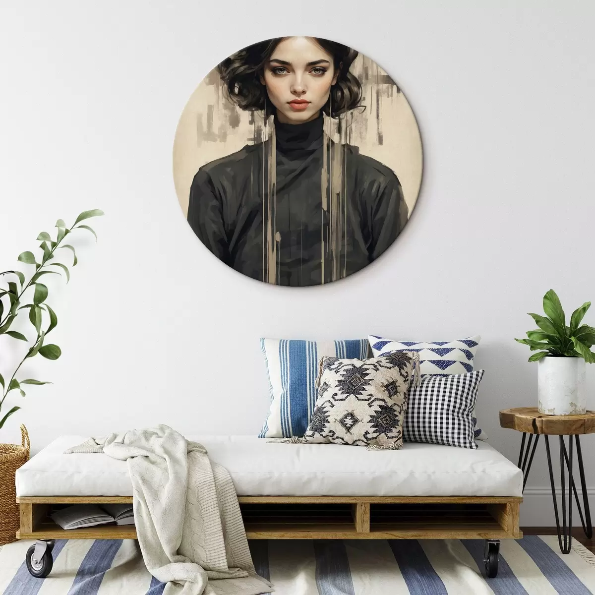 Nuotrauka Moters trumpais tamsiais plaukais portretas abstrakčiame fone Nr r44890
