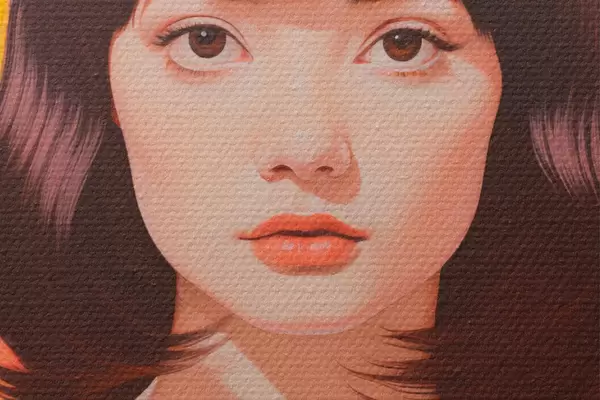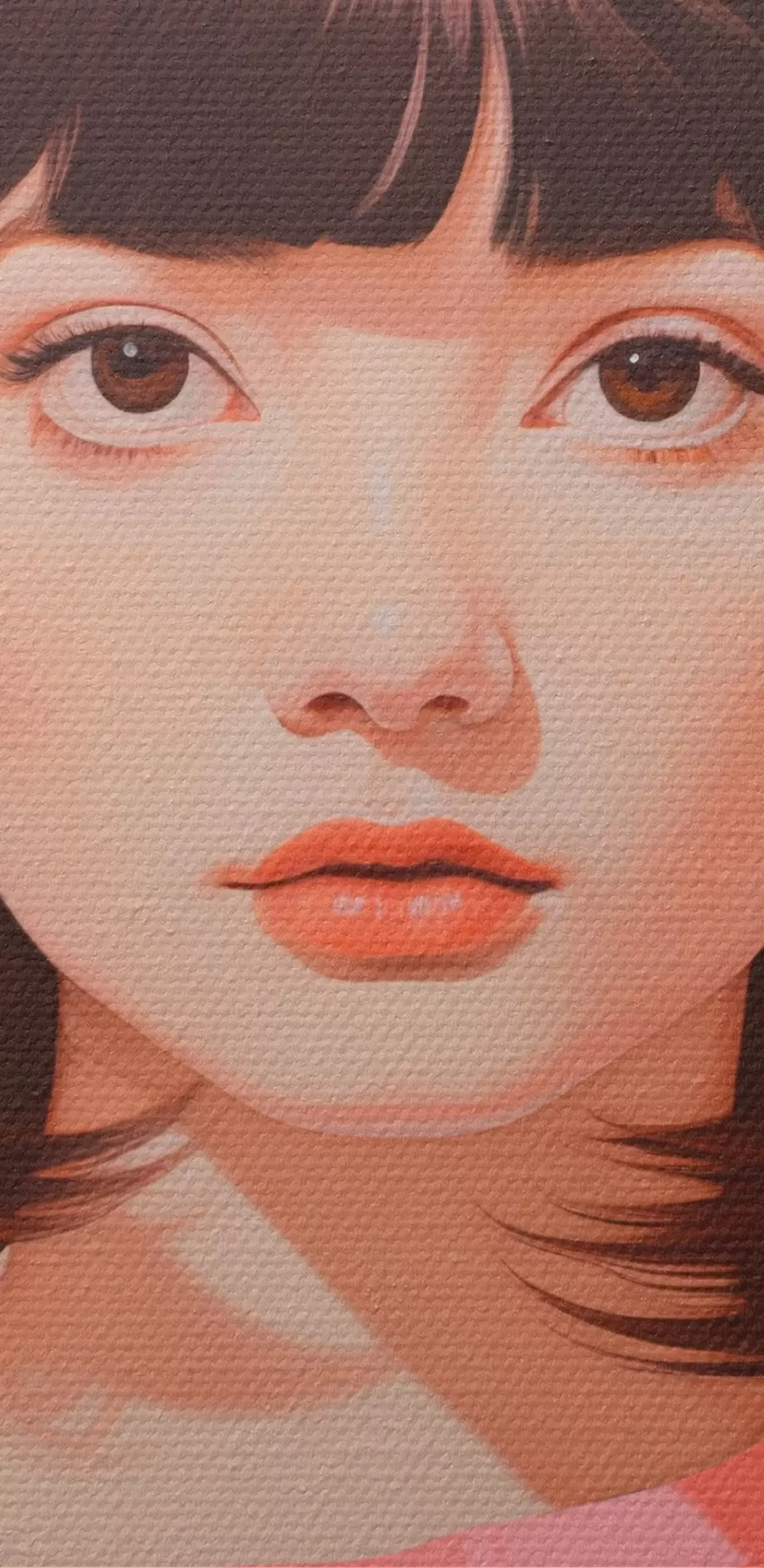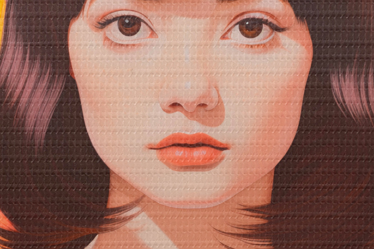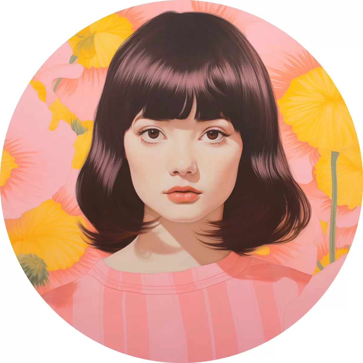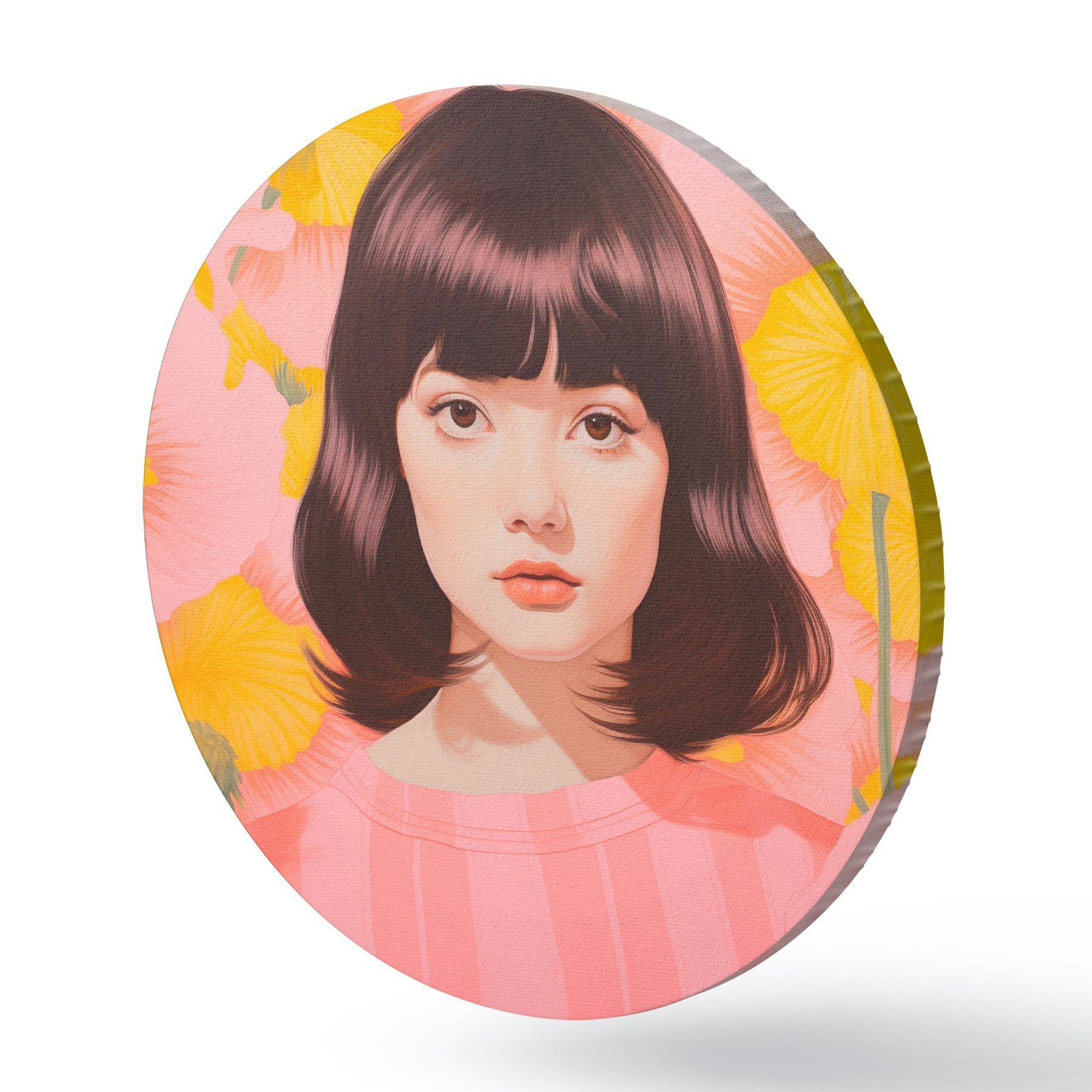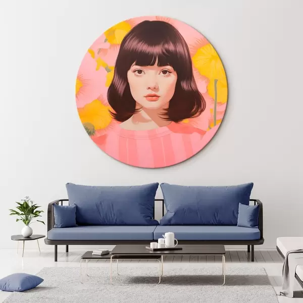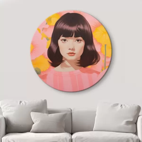 Nuotrauka Dekoratyvus minimalistinis azijietės mergaitės portretas geltonų ir rausvų gėlių lauke Nr r44924