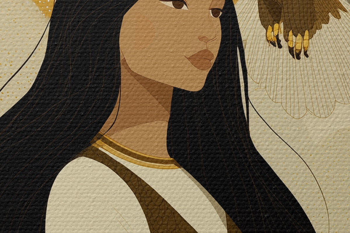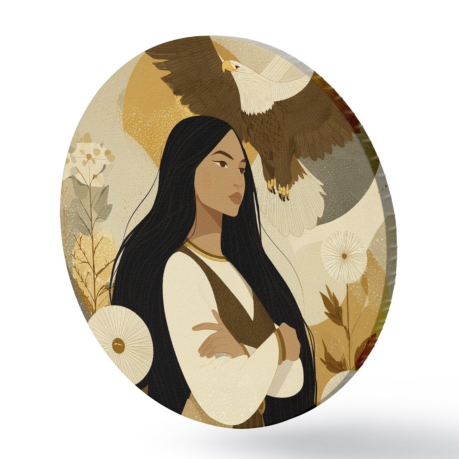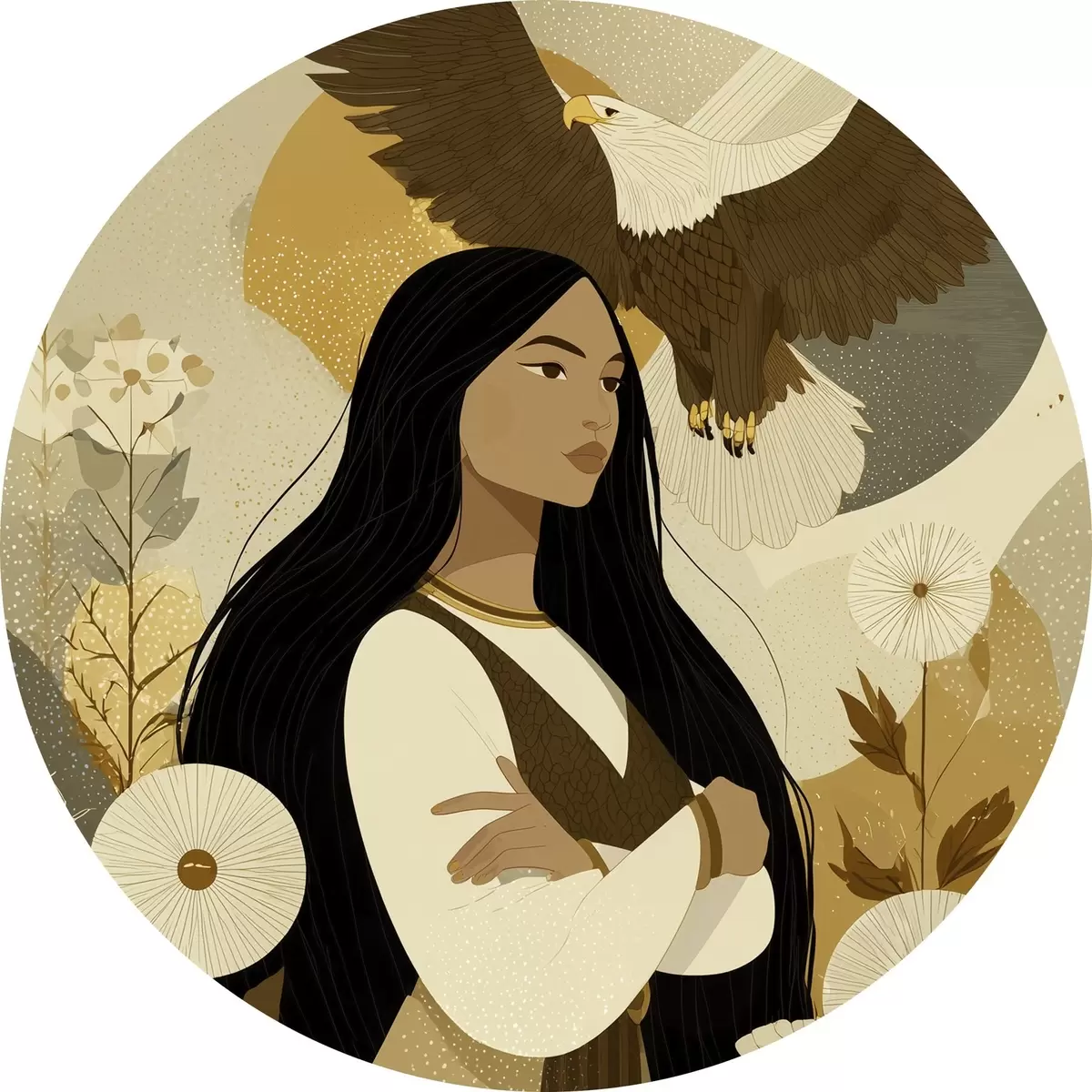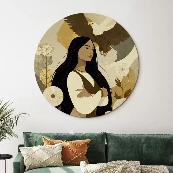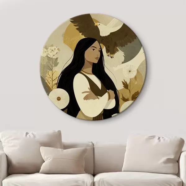 Nuotrauka Moteris su skrendančiu ereliu, gentinis stilius, smėlio spalvos Nr r44977