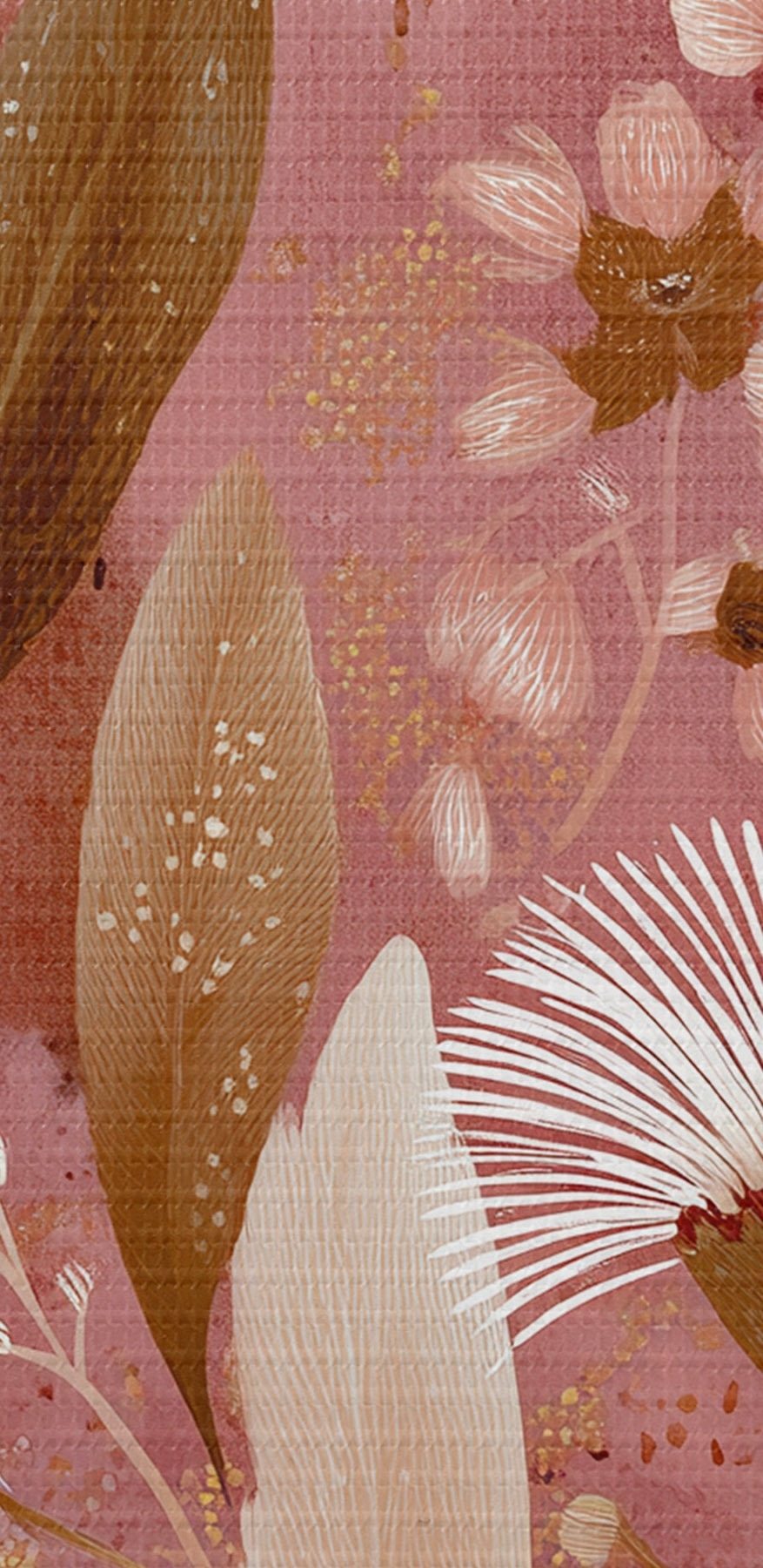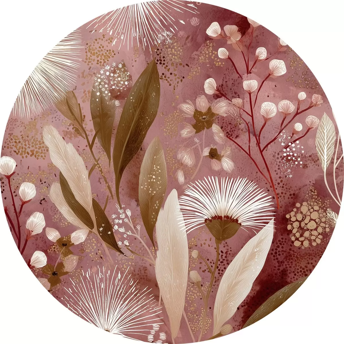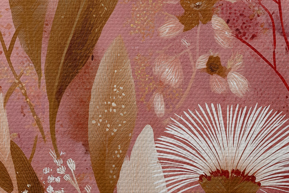 Nuotrauka Boho stiliaus baltos gėlės raudoname fone, detalus piešinys Nr r44979