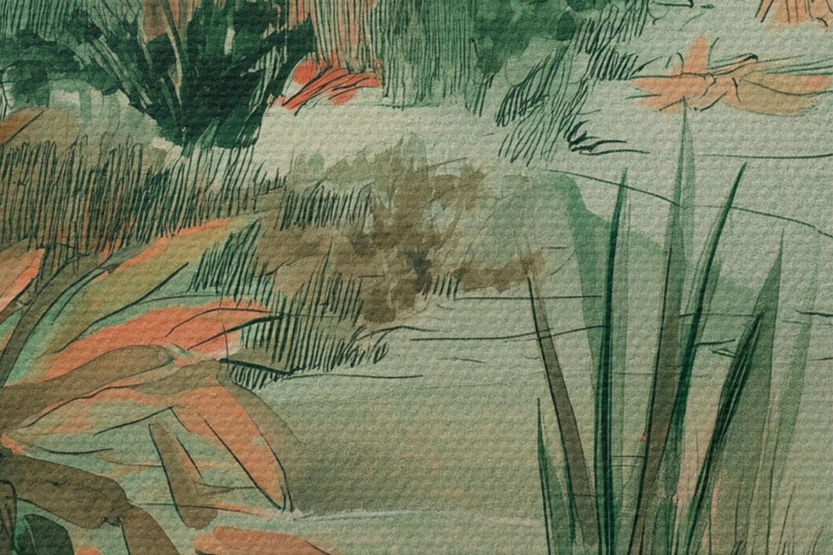 Nuotrauka Rytietiškas sodas su krūmais ir medžiais, žalios spalvos Nr r44982