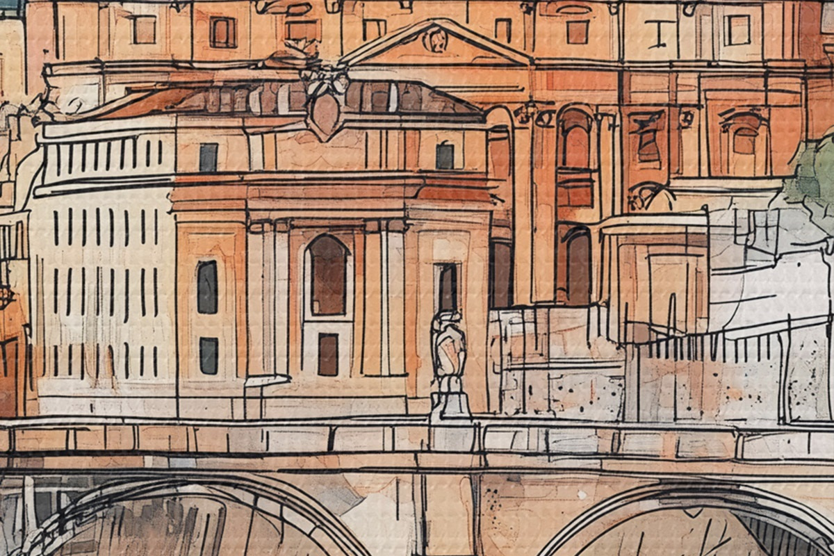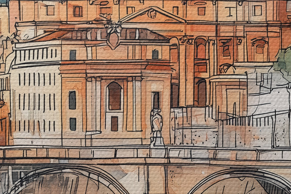 Nuotrauka Akvarelė Romos miestas, eskizinis piešinys, architektūra Nr r44983