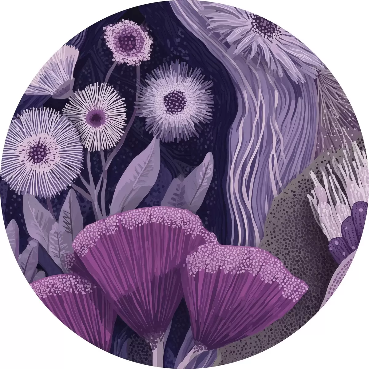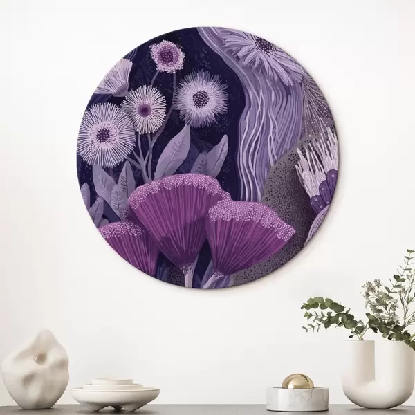 Apvalūs paveikslai Violetinės spalvos gėlių dizainas, detalus piešinys r44984