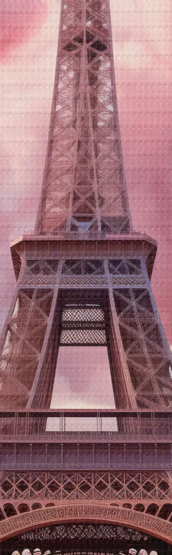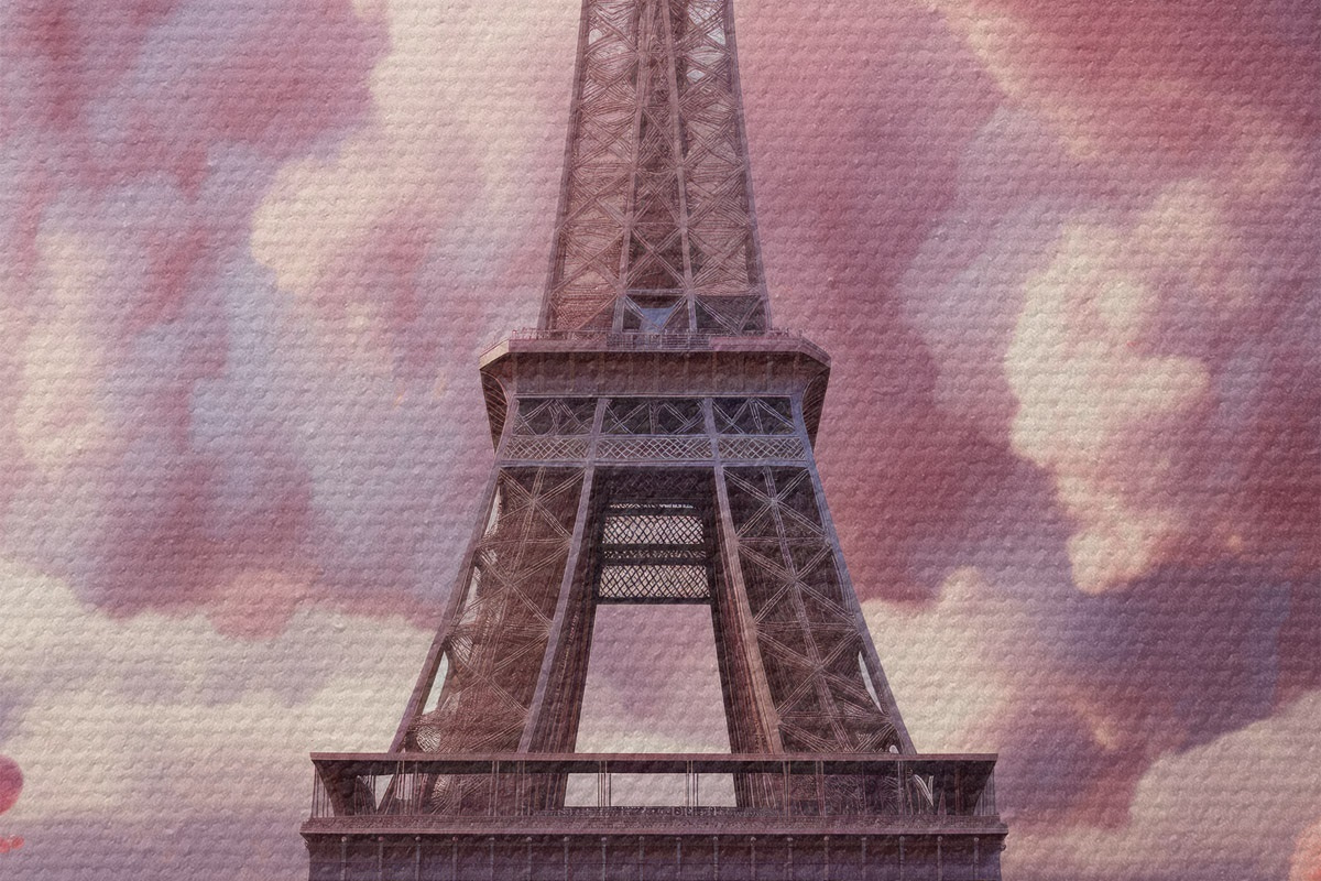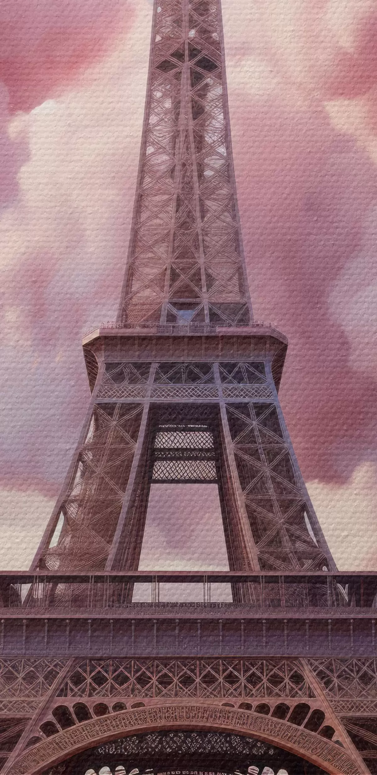 Nuotrauka Eifelio bokštas rausvuose fantastinio stiliaus debesyse Nr r45036