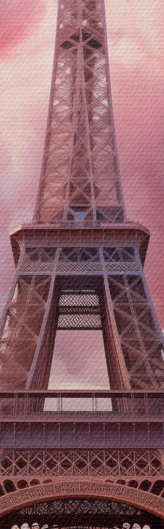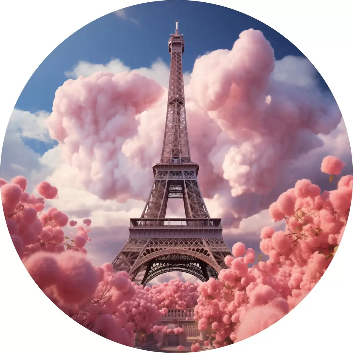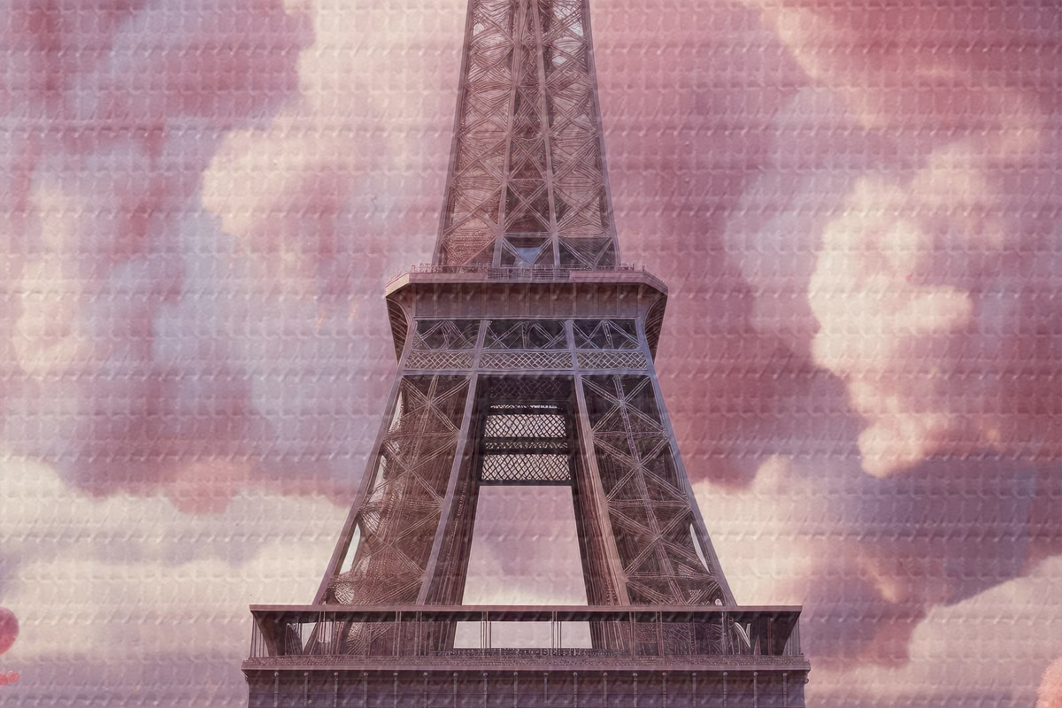 Nuotrauka Eifelio bokštas rausvuose fantastinio stiliaus debesyse Nr r45036