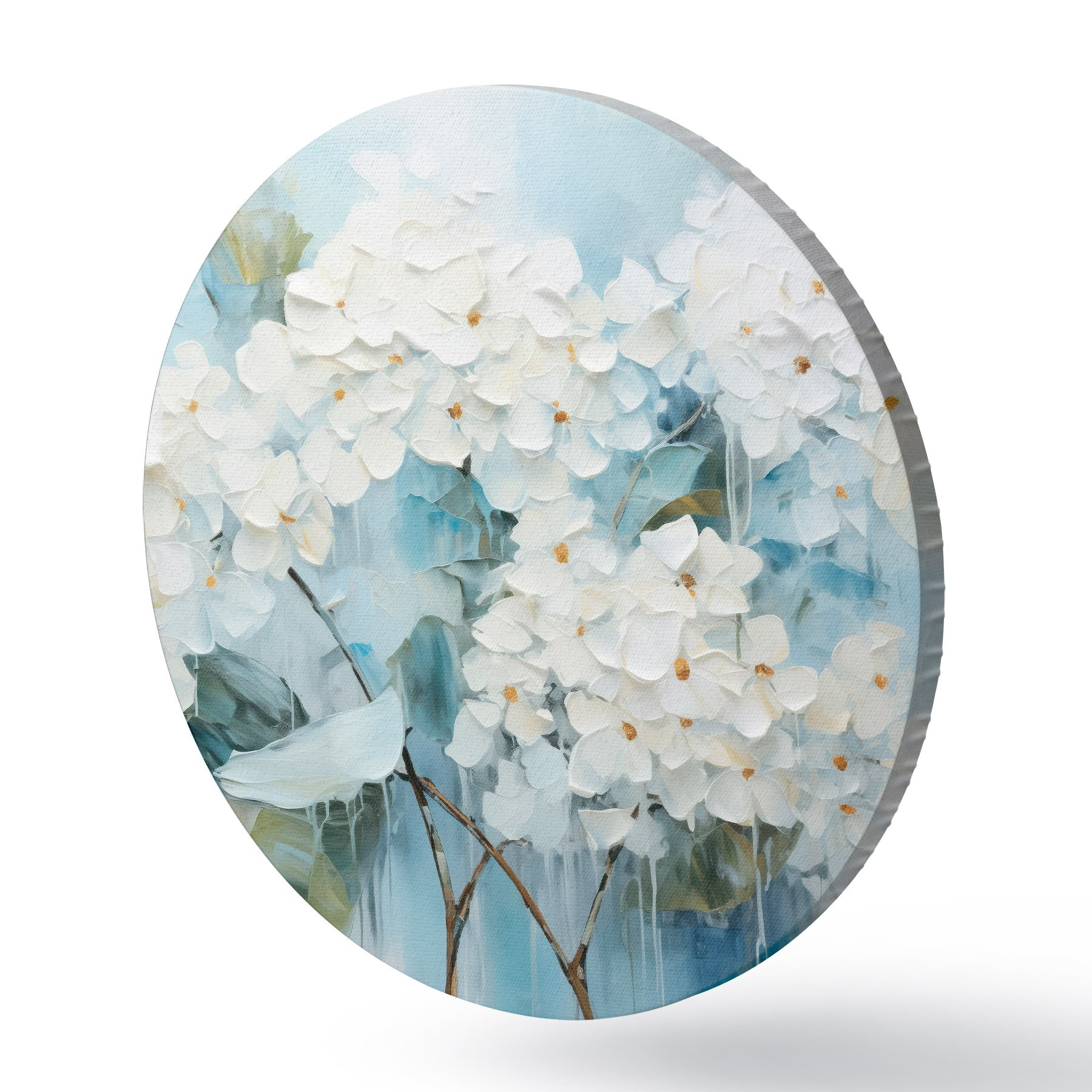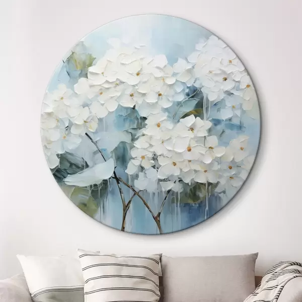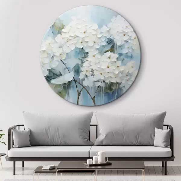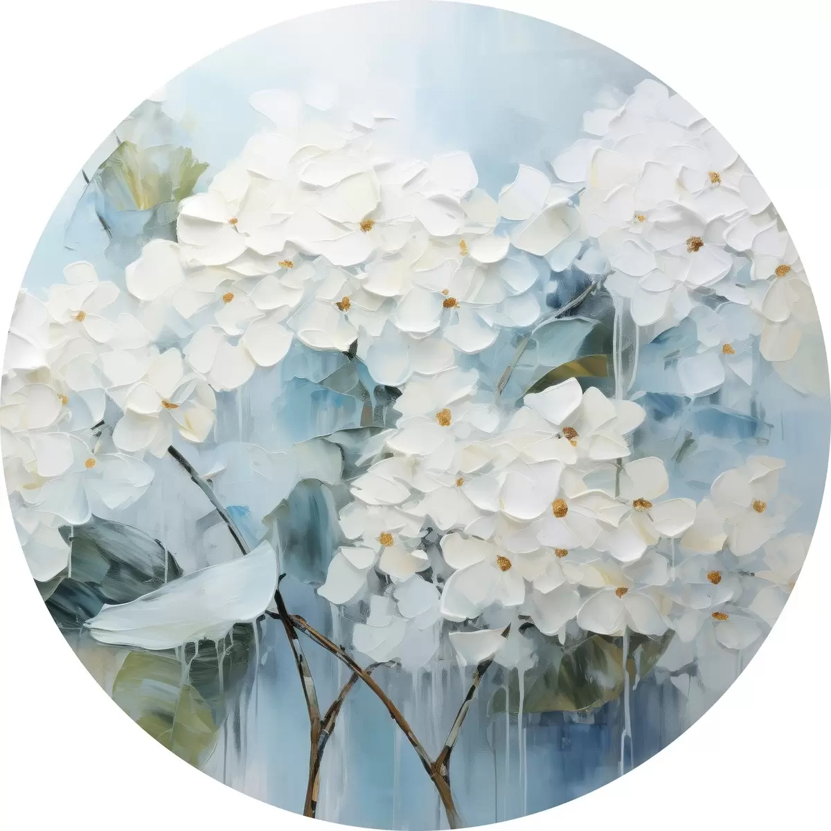 Apvalūs paveikslai Žydinčios baltosios hortenzijos aliejinės tapybos stiliumi r45051