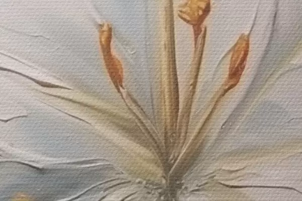Nuotrauka Balta lelija su geltonais akcentais mėlyname fone Nr r45078