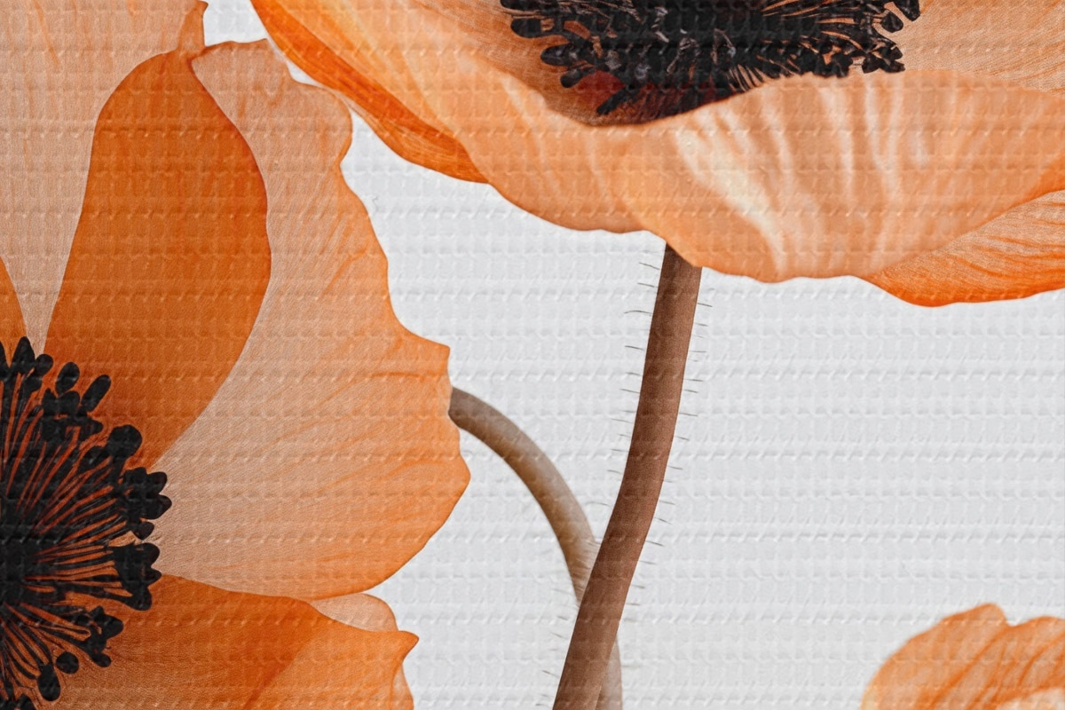 Nuotrauka Oranžinės aguonos, džiovintos gėlės šviesiame fone, švelnus apšvietimas, subtilūs žiedlapiai, gėlių kompozicija Nr r45167