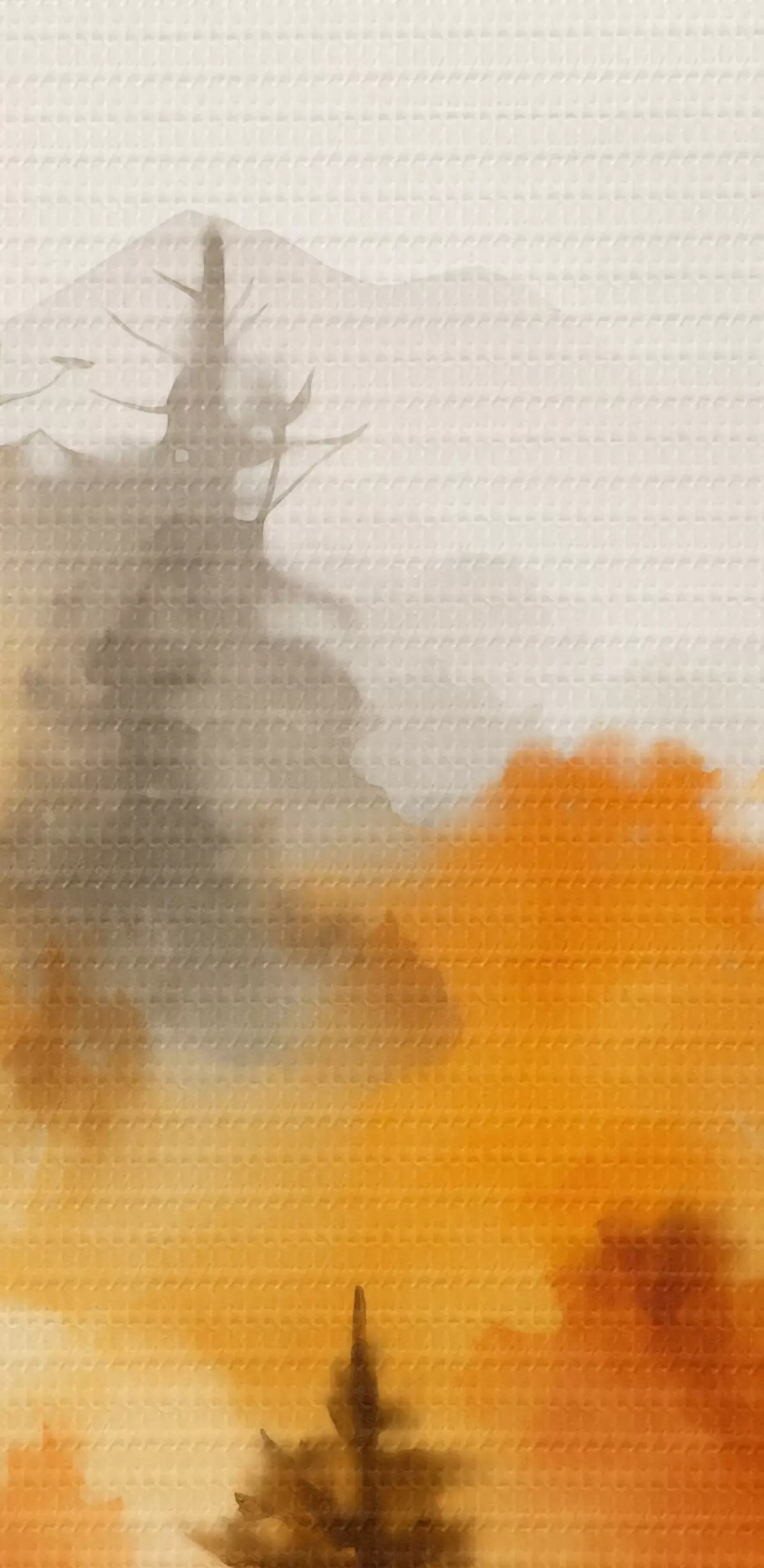 Nuotrauka Peizažo akvarele tapyba, imituojanti mišką su aukštomis pušimis ir kalnais fone Nr r45169