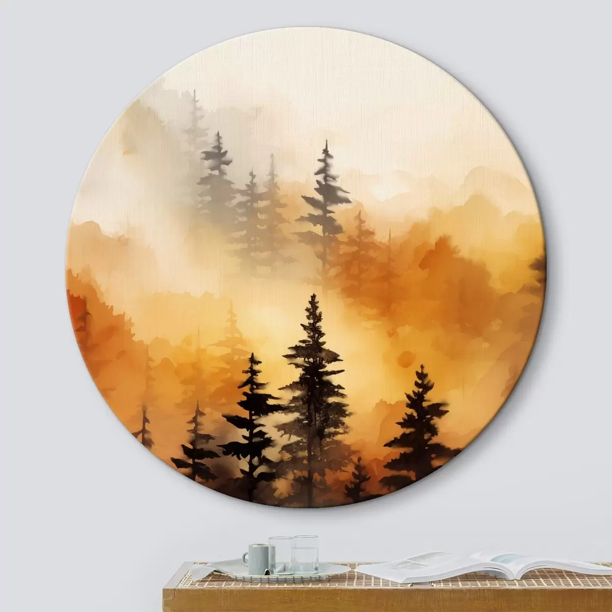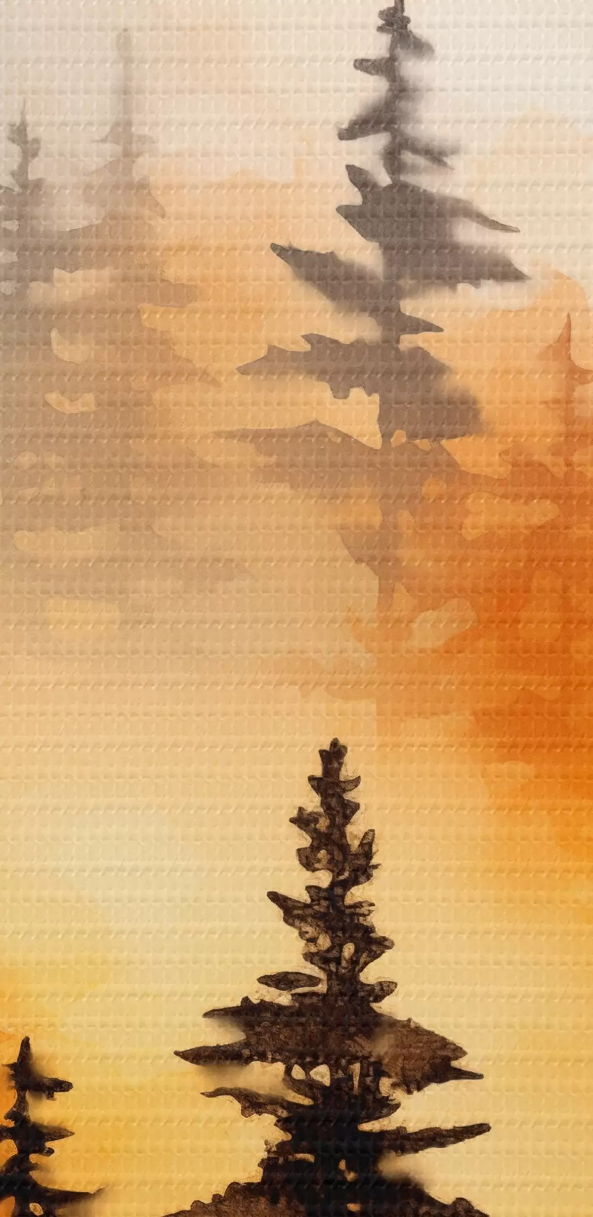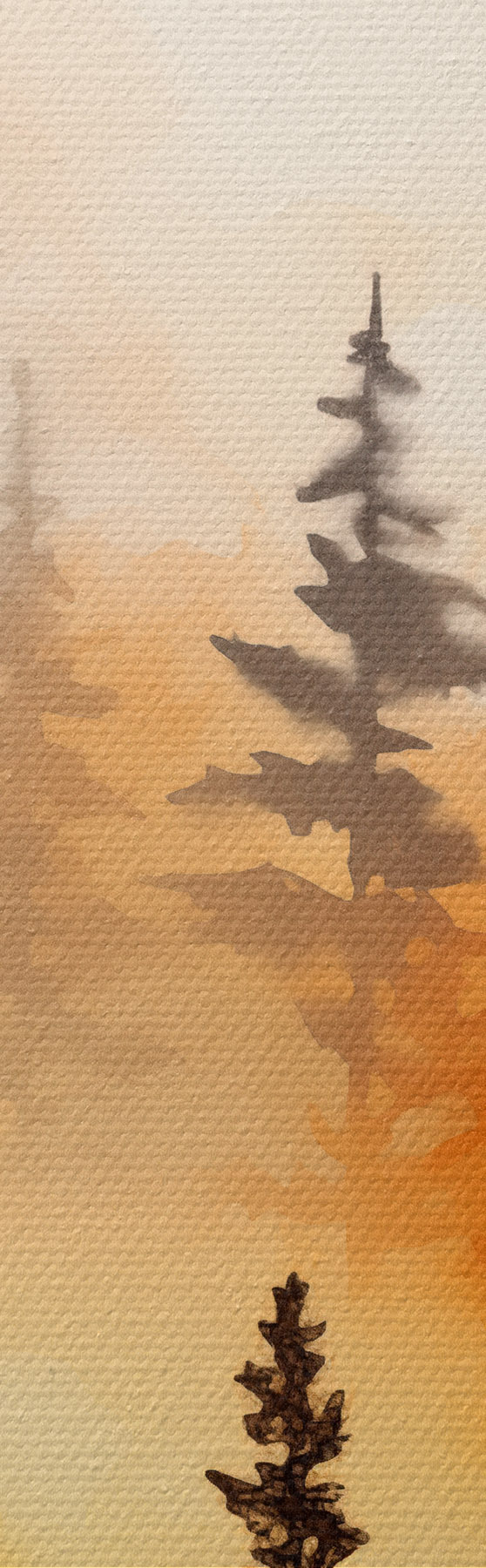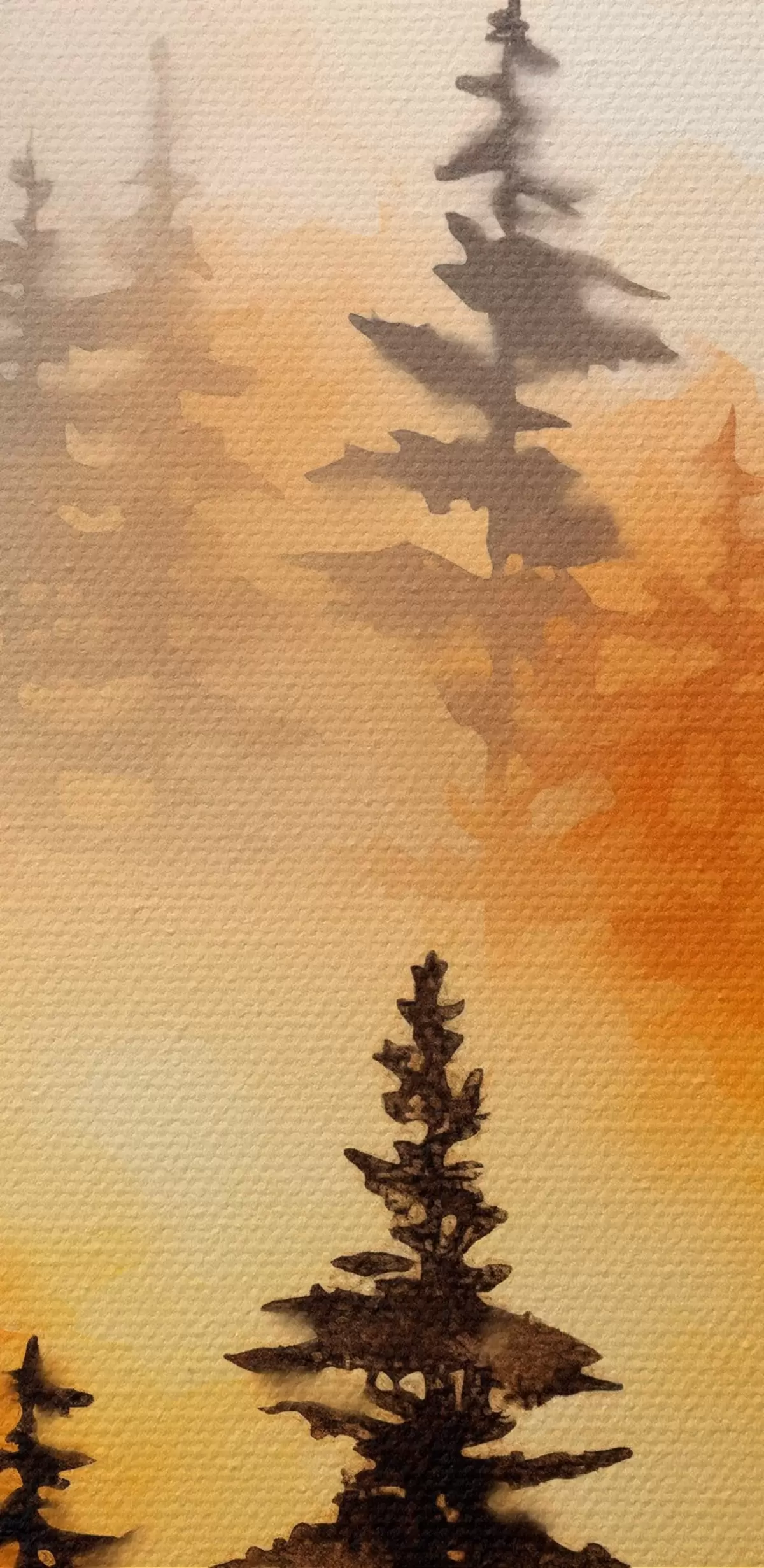 Nuotrauka Peizažo akvarele tapyba, imituojanti mišką su aukštomis pušimis ir kalnais fone Nr r45170
