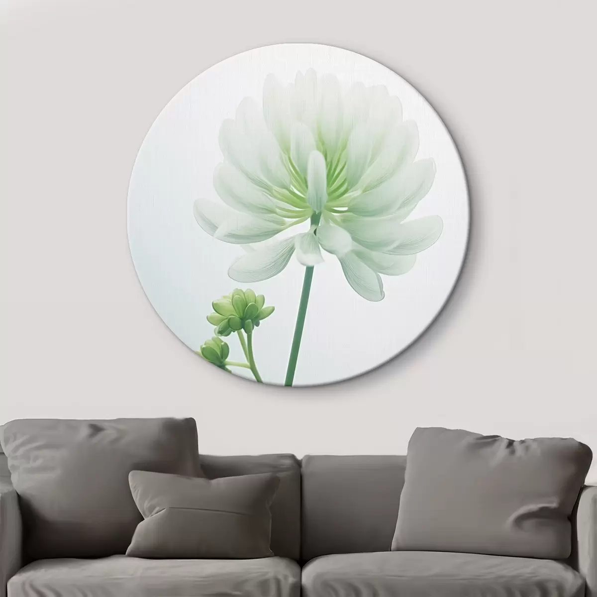 Nuotrauka Balto dobilo gėlė su žaliu stiebu ir lapais, minkštas apšvietimas, švarus fonas, minimalistinė kompozicija, botaninis Nr r45171