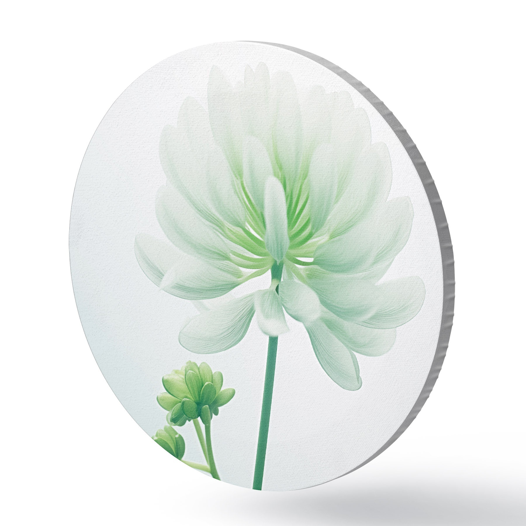 Nuotrauka Balto dobilo gėlė su žaliu stiebu ir lapais, minkštas apšvietimas, švarus fonas, minimalistinė kompozicija, botaninis Nr r45171