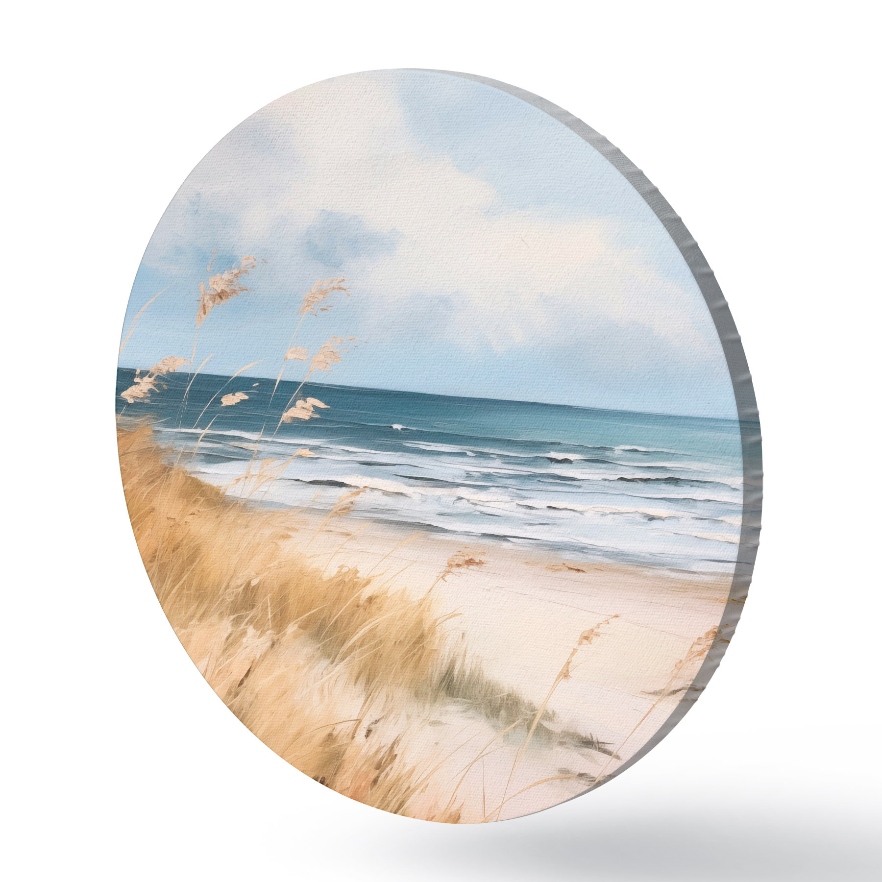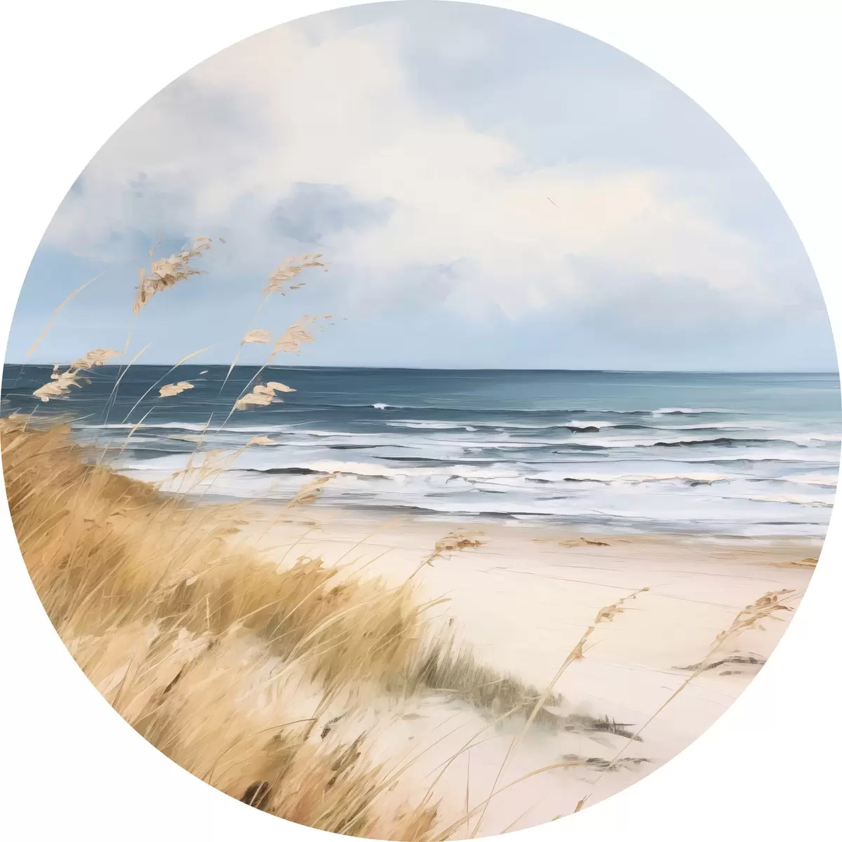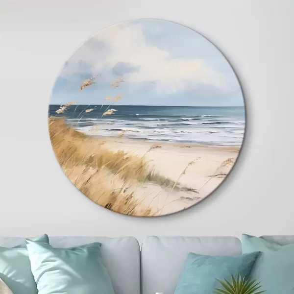 Nuotrauka Smėlėtas paplūdimys su aukšta žole pirmame plane, vandenynas su bangomis ir debesuotas dangus antrame plane Nr r45174