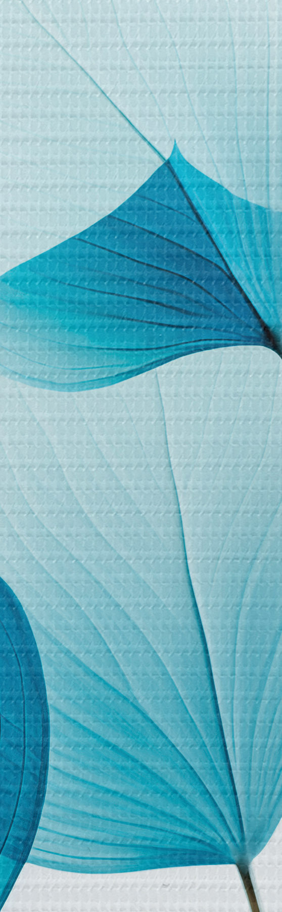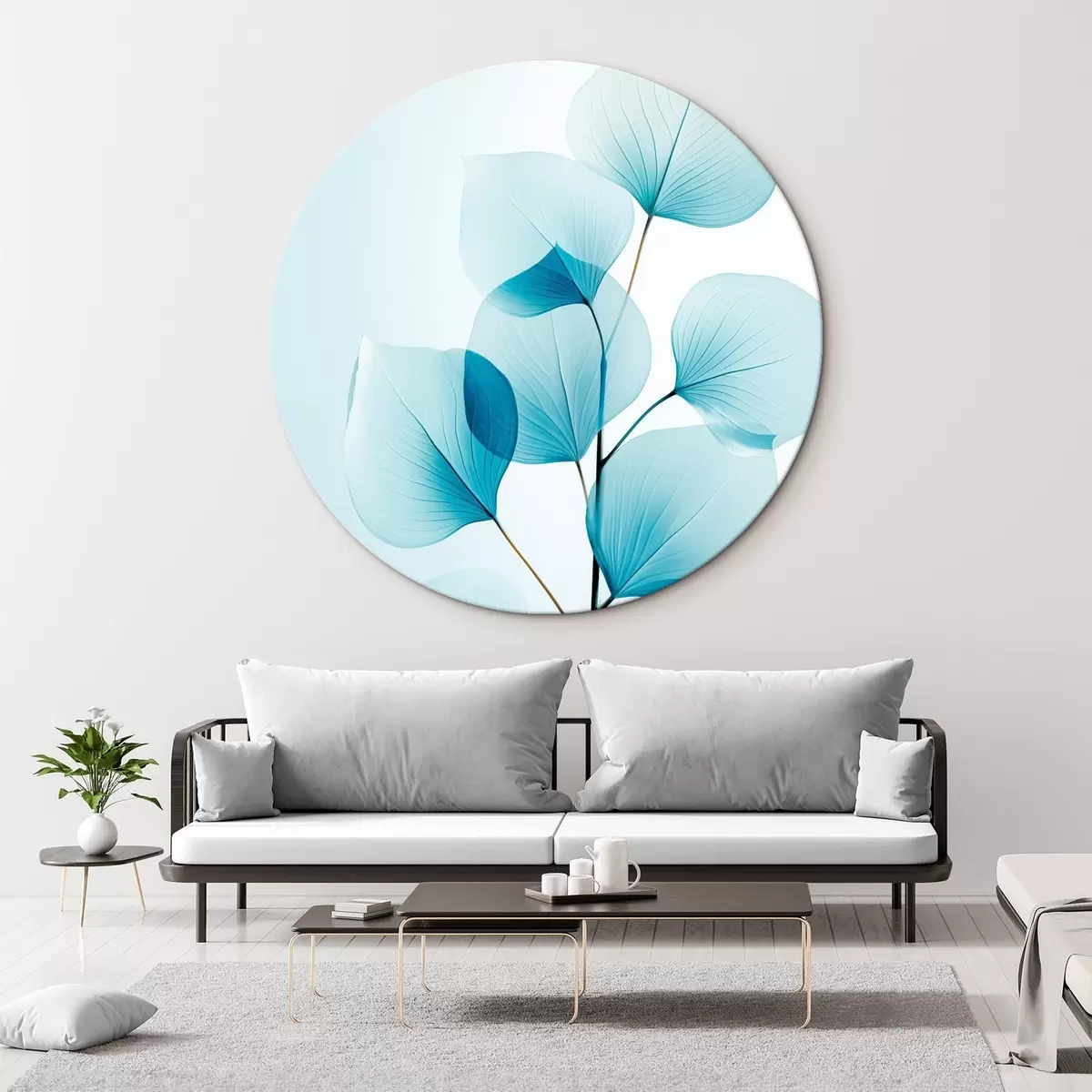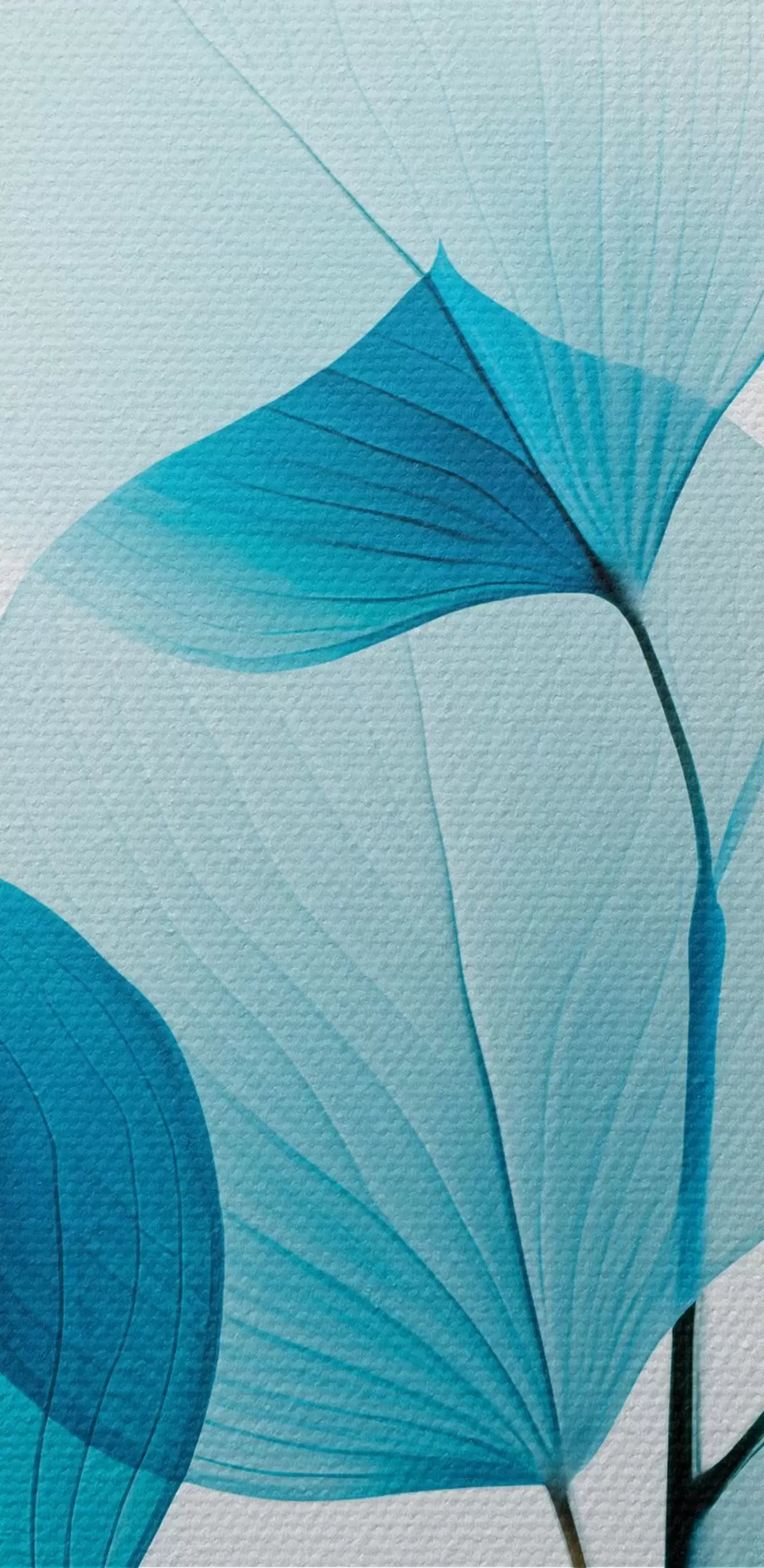 Nuotrauka Šaka su permatomais mėlynais lapais, matomos subtilios gyslos, lengva ir rami kompozicija, minimalistinė estetika Nr r45175