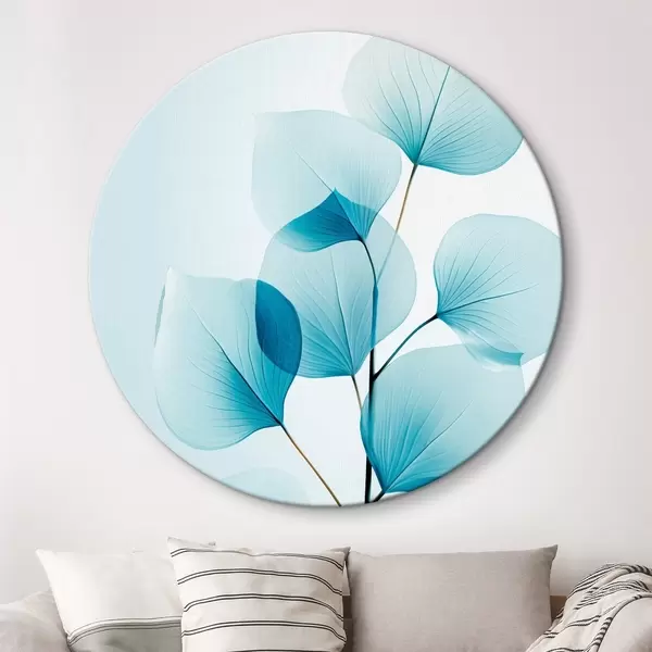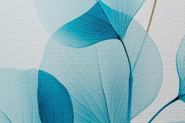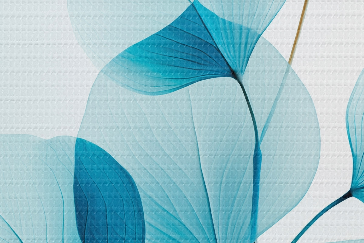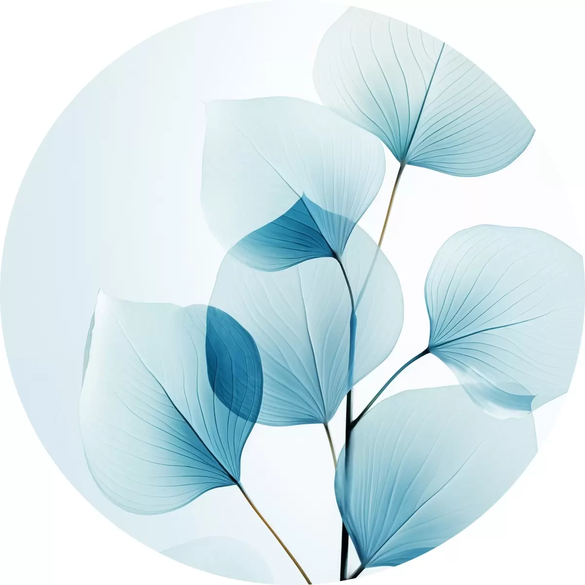 Nuotrauka Šaka su permatomais mėlynais lapais, matomos subtilios gyslos, lengva ir rami kompozicija, minimalistinė estetika Nr r45175