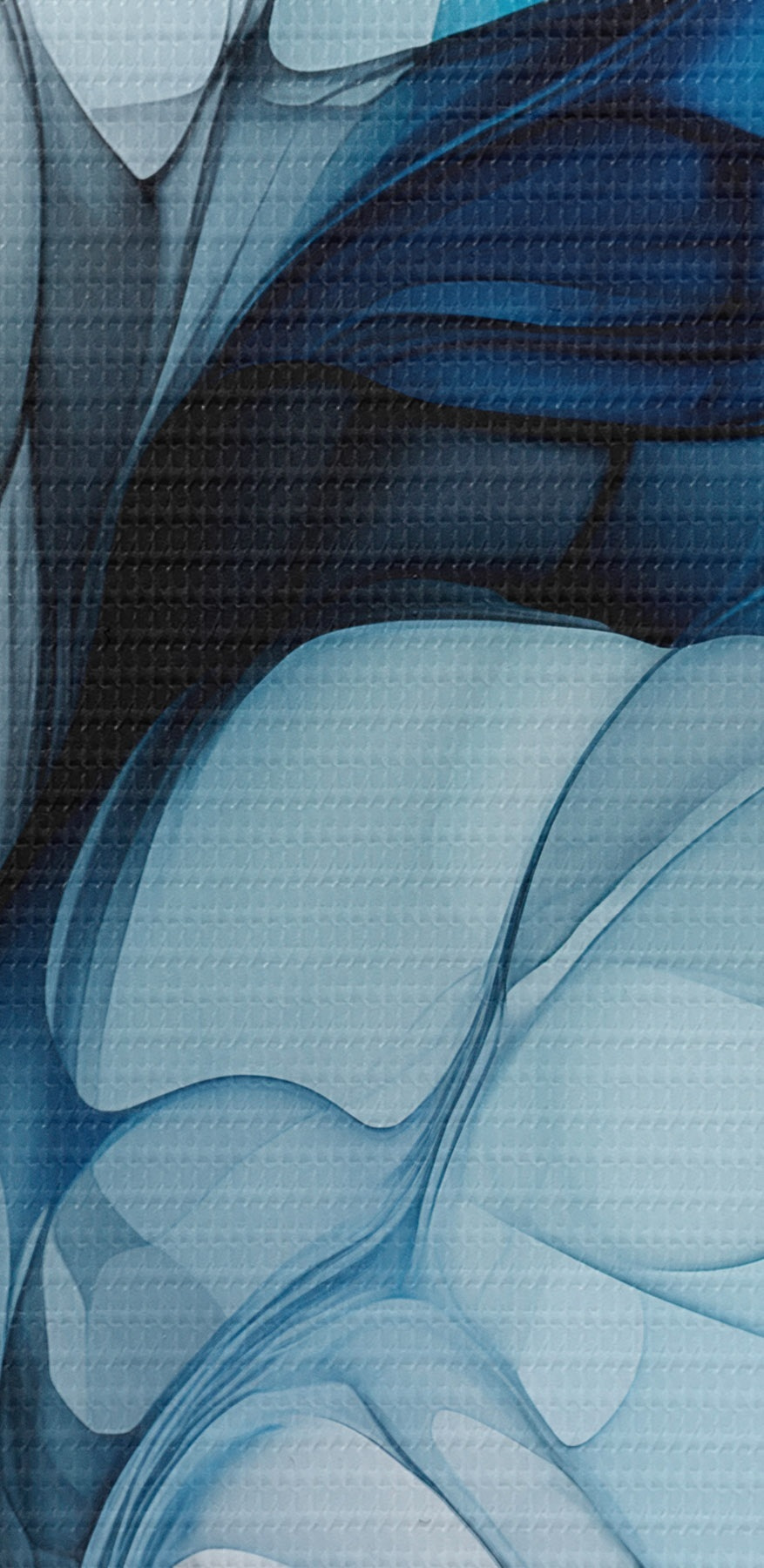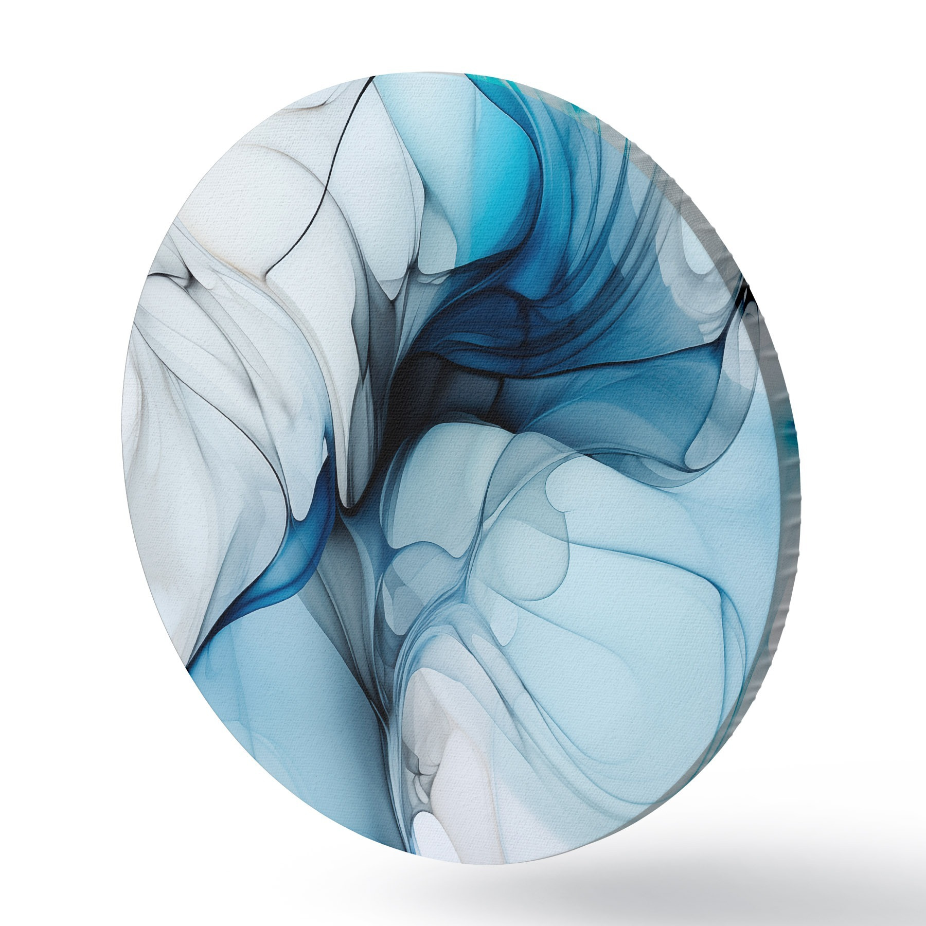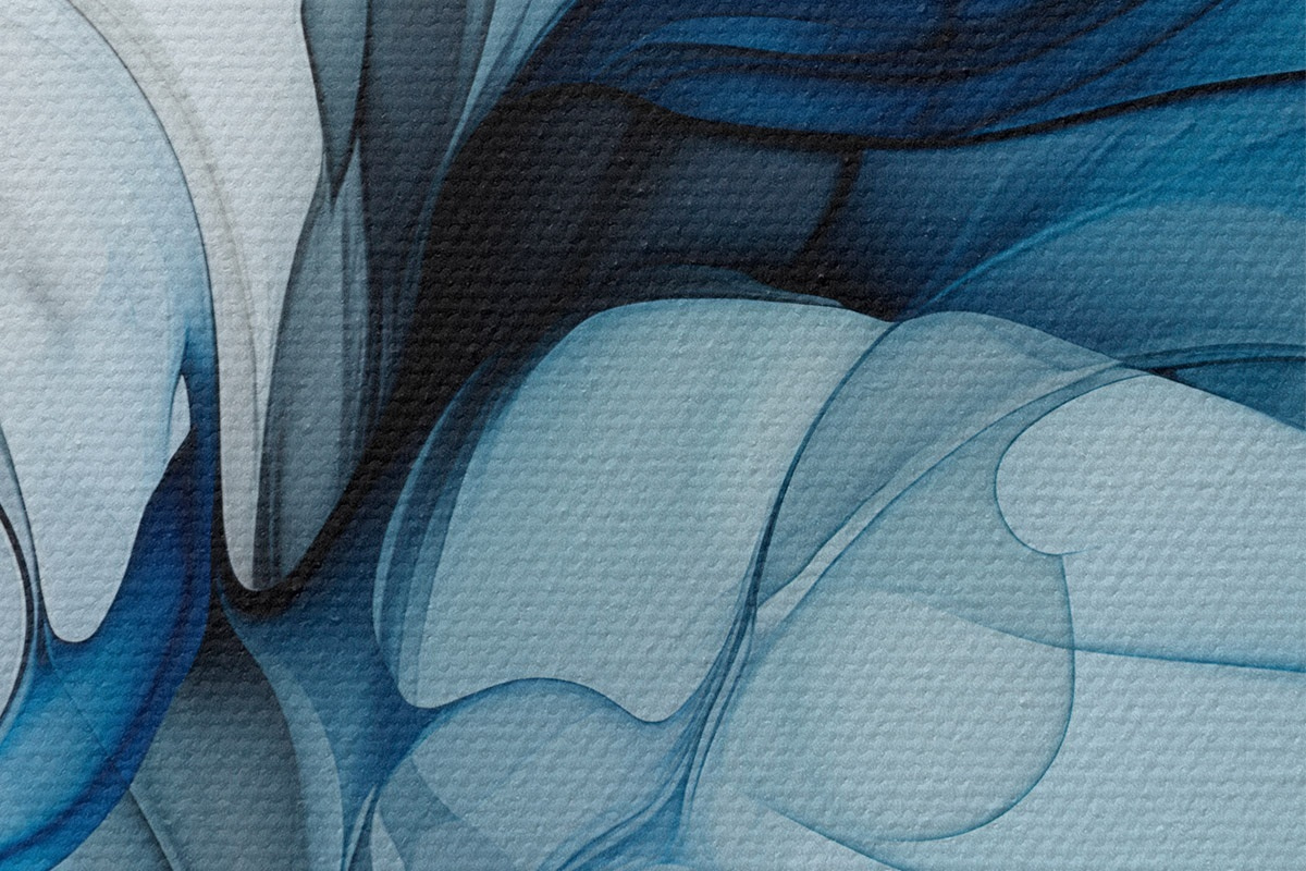 Nuotrauka Abstrakti kompozicija su tekančiomis linijomis ir permatomais žiedlapiais mėlynos, baltos ir smėlio spalvos atspalviais, alkoholinio tušo imitacija Nr r45178