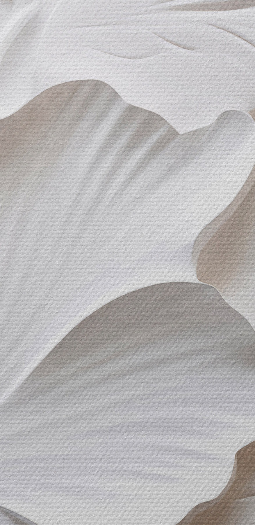 Nuotrauka Dekoratyvios minimalistinės baltos gėlės su lapais, reljefo imitacija, baltas fonas Nr r45180