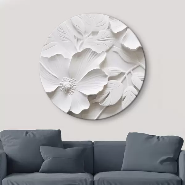 Nuotrauka Dekoratyvios minimalistinės baltos gėlės su lapais, reljefo imitacija, baltas fonas Nr r45180