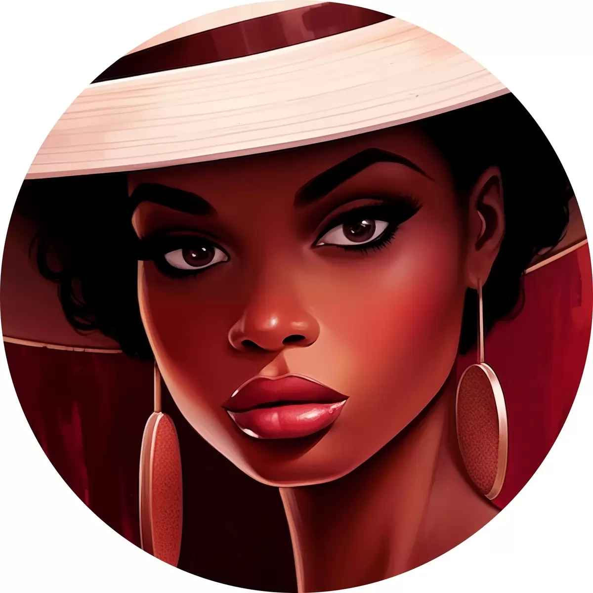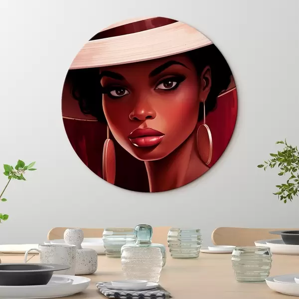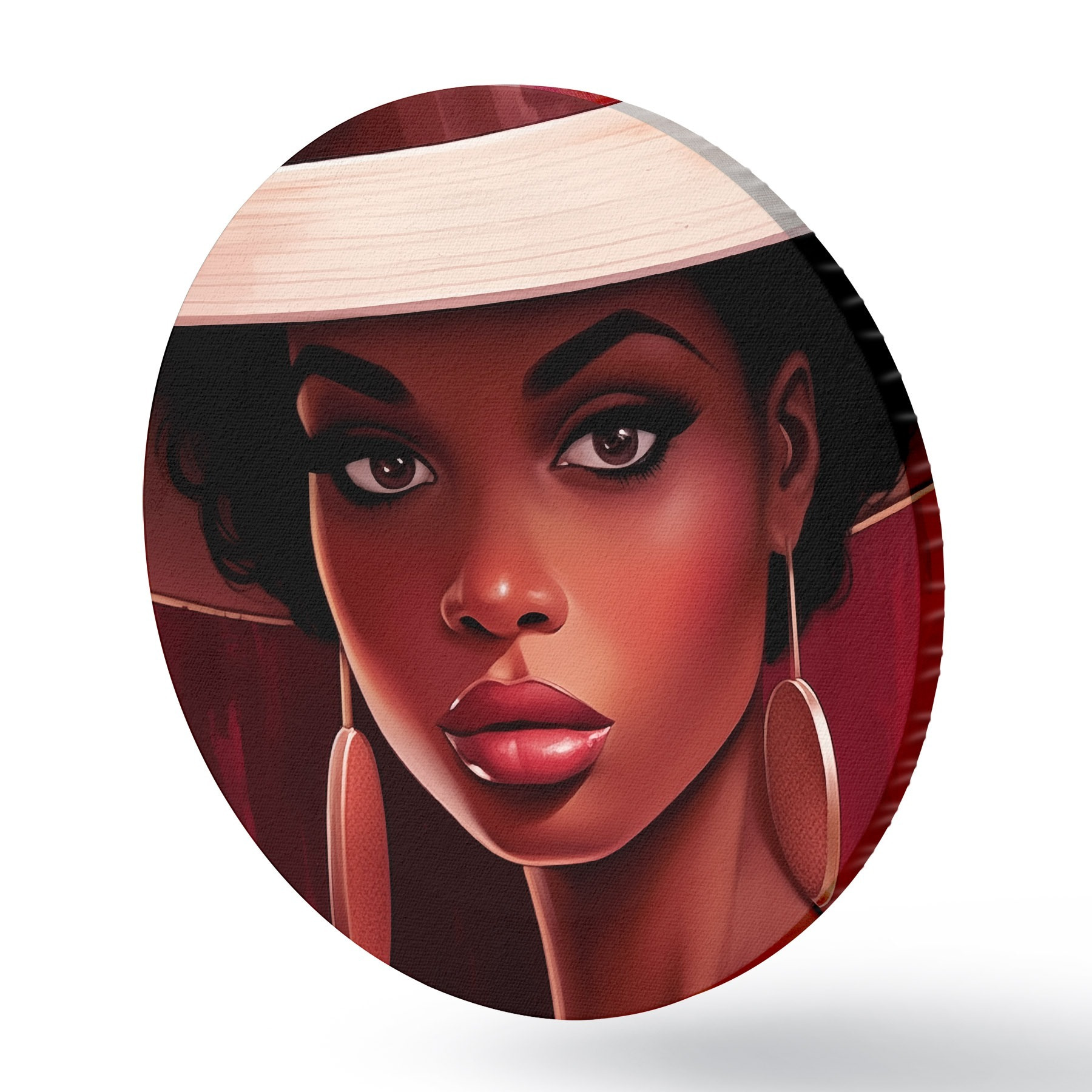 Apvalūs paveikslai Moteris su šviesia skrybėle ir apvaliais auskarais r45323