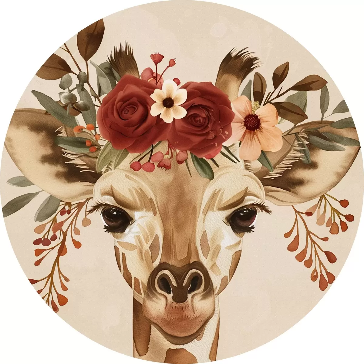 Nuotrauka Akvarelės stiliaus žirafa su gėlėmis ant galvos Nr r45331
