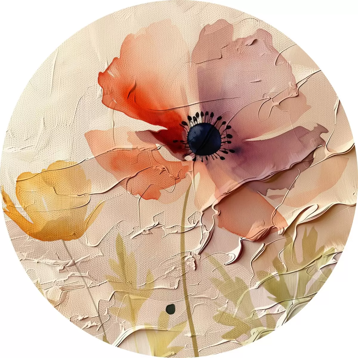 Apvalūs paveikslai Permatoma gėlių kompozicija šviesiame fone r45338