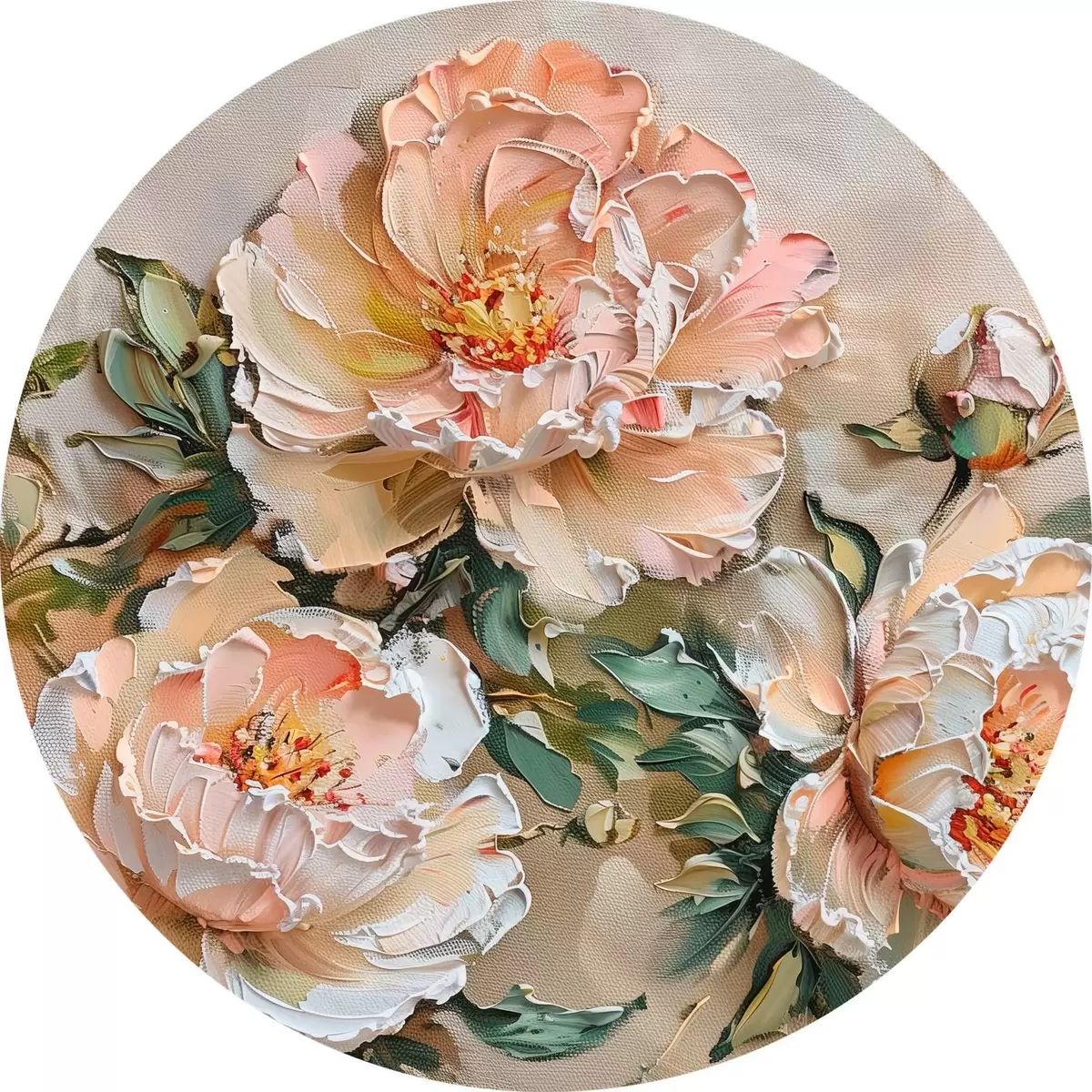 Apvalūs paveikslai Bijūnų impasto imitacija r45447