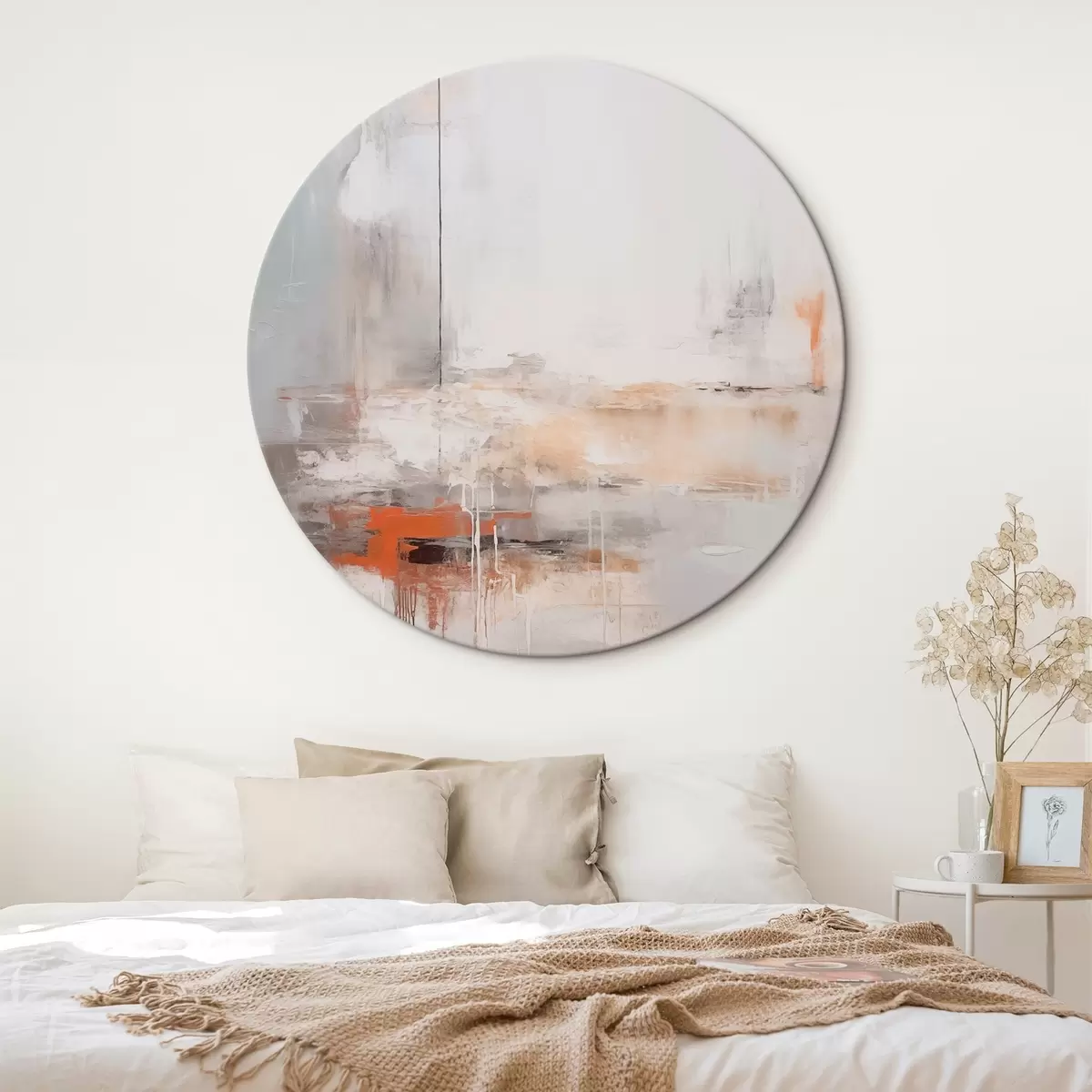 Apvalūs paveikslai Šiuolaikinė abstrakcija su dėvėtos tekstūros imitacija r45452