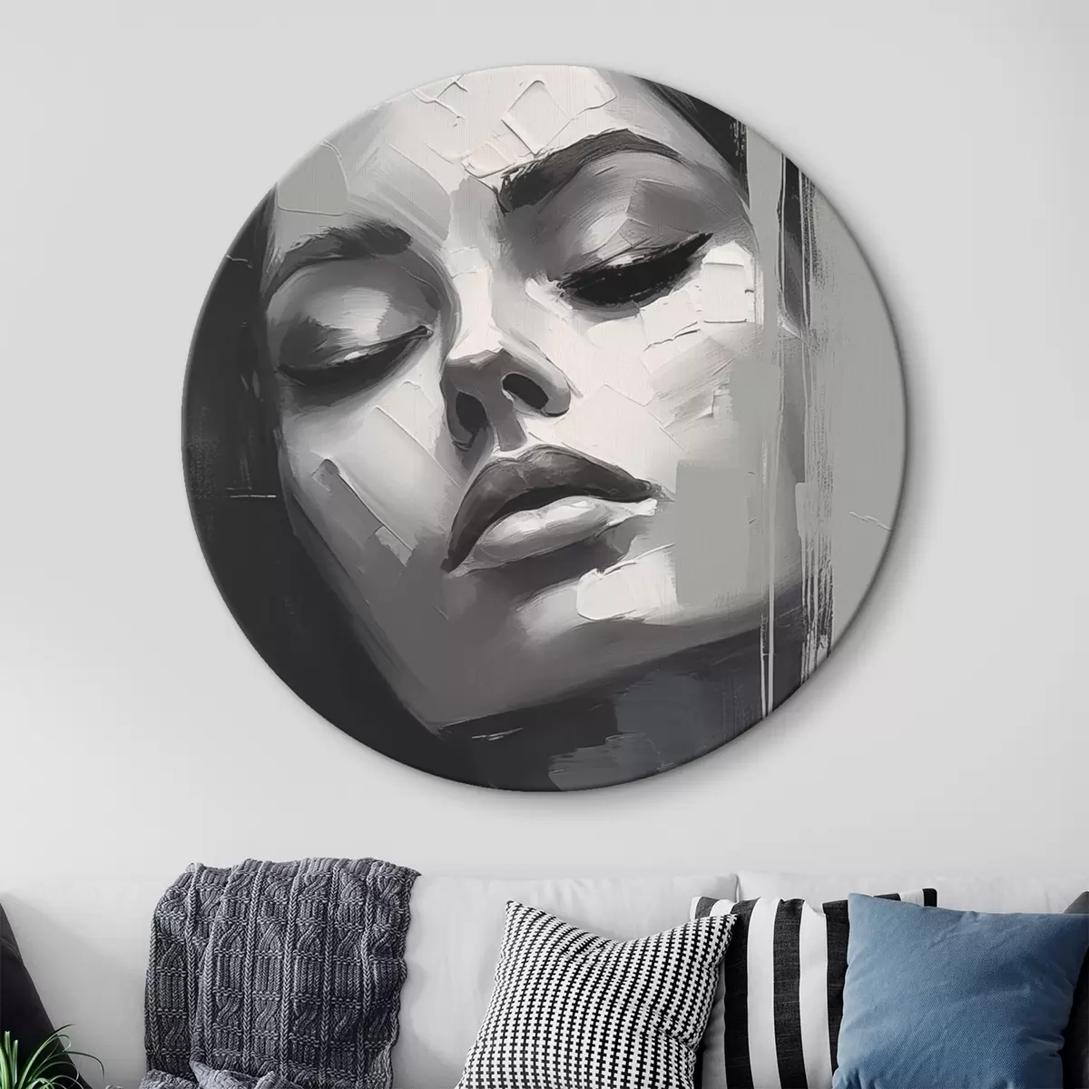 Nuotrauka Juodai baltas užmerktų akių moters portretas Nr r45479