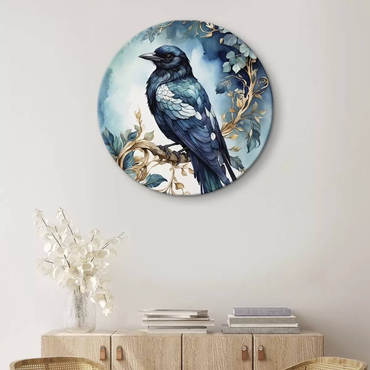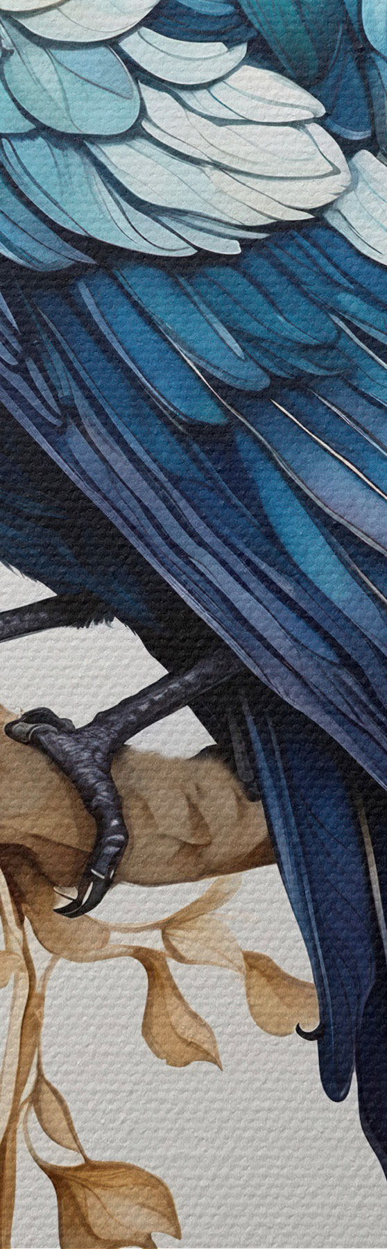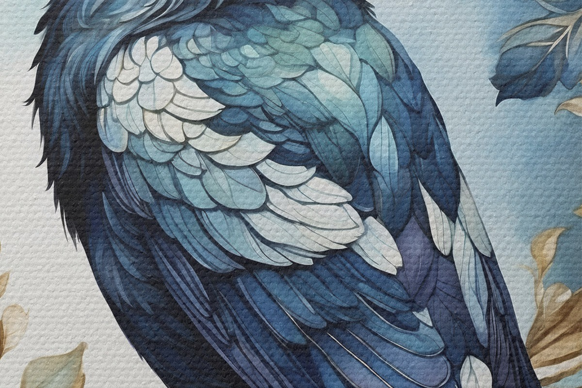 Nuotrauka Mėlynas paukštis ant šakos su akvarelės stiliaus lapais Nr r45483