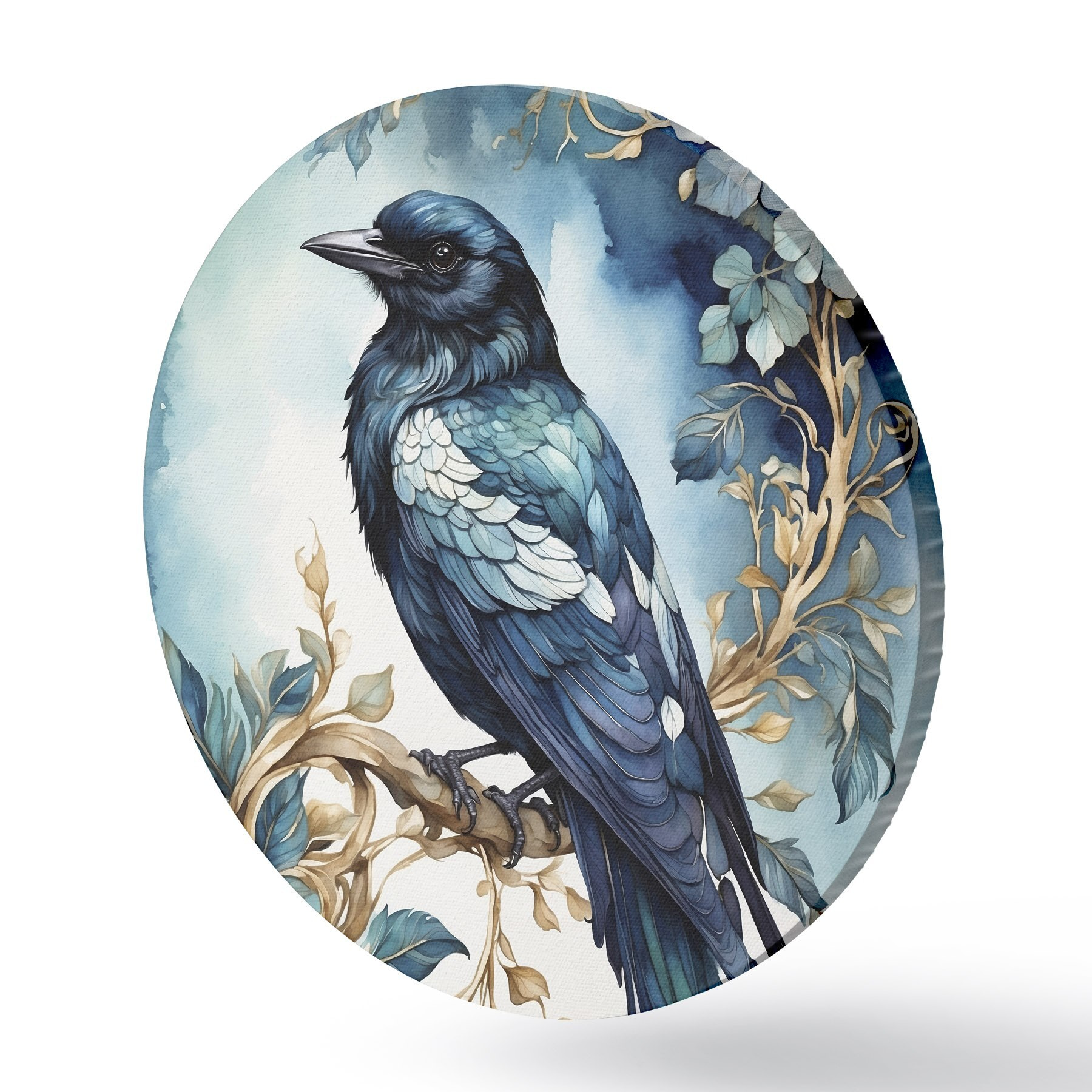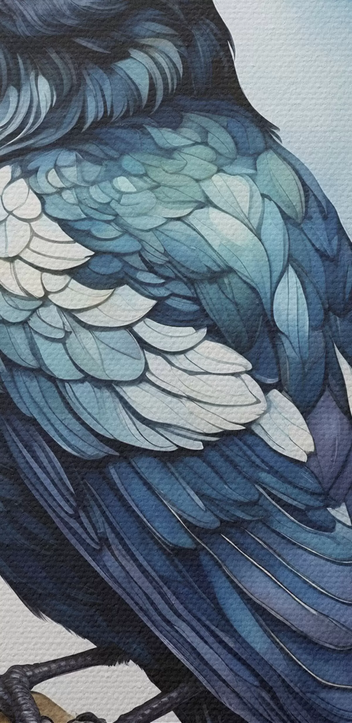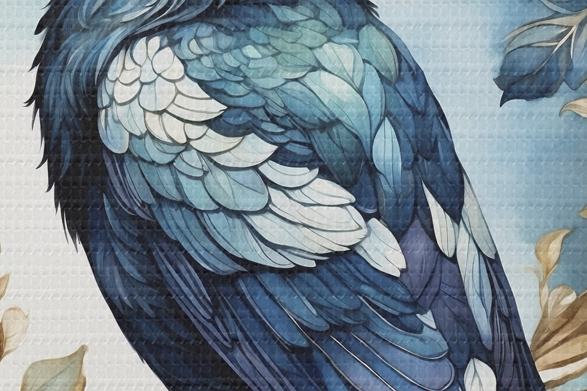 Nuotrauka Mėlynas paukštis ant šakos su akvarelės stiliaus lapais Nr r45483
