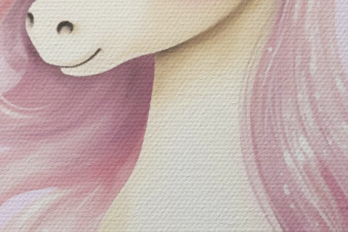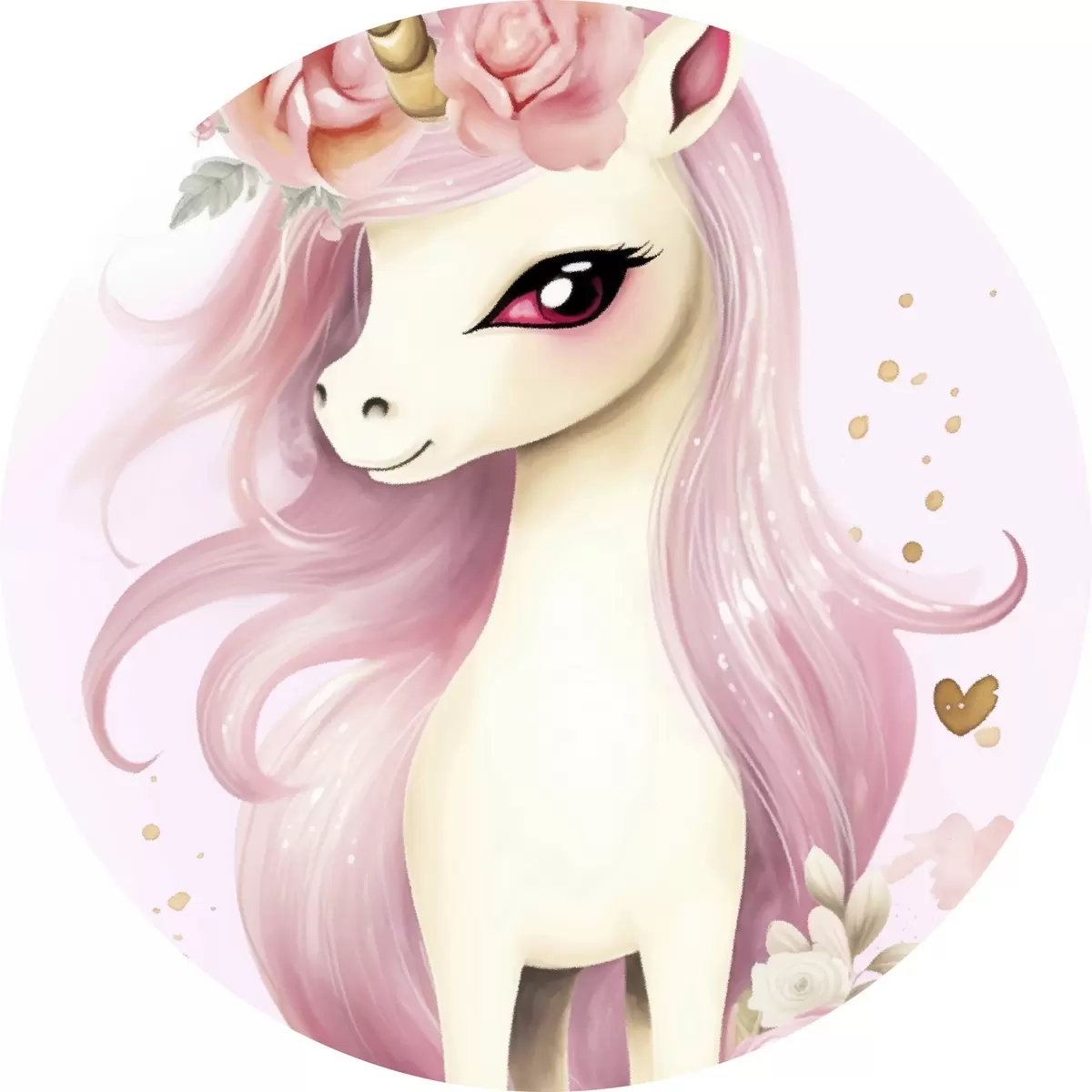 Nuotrauka Vienaragis su rožine griva ir gėlių vainiku Nr r45484
