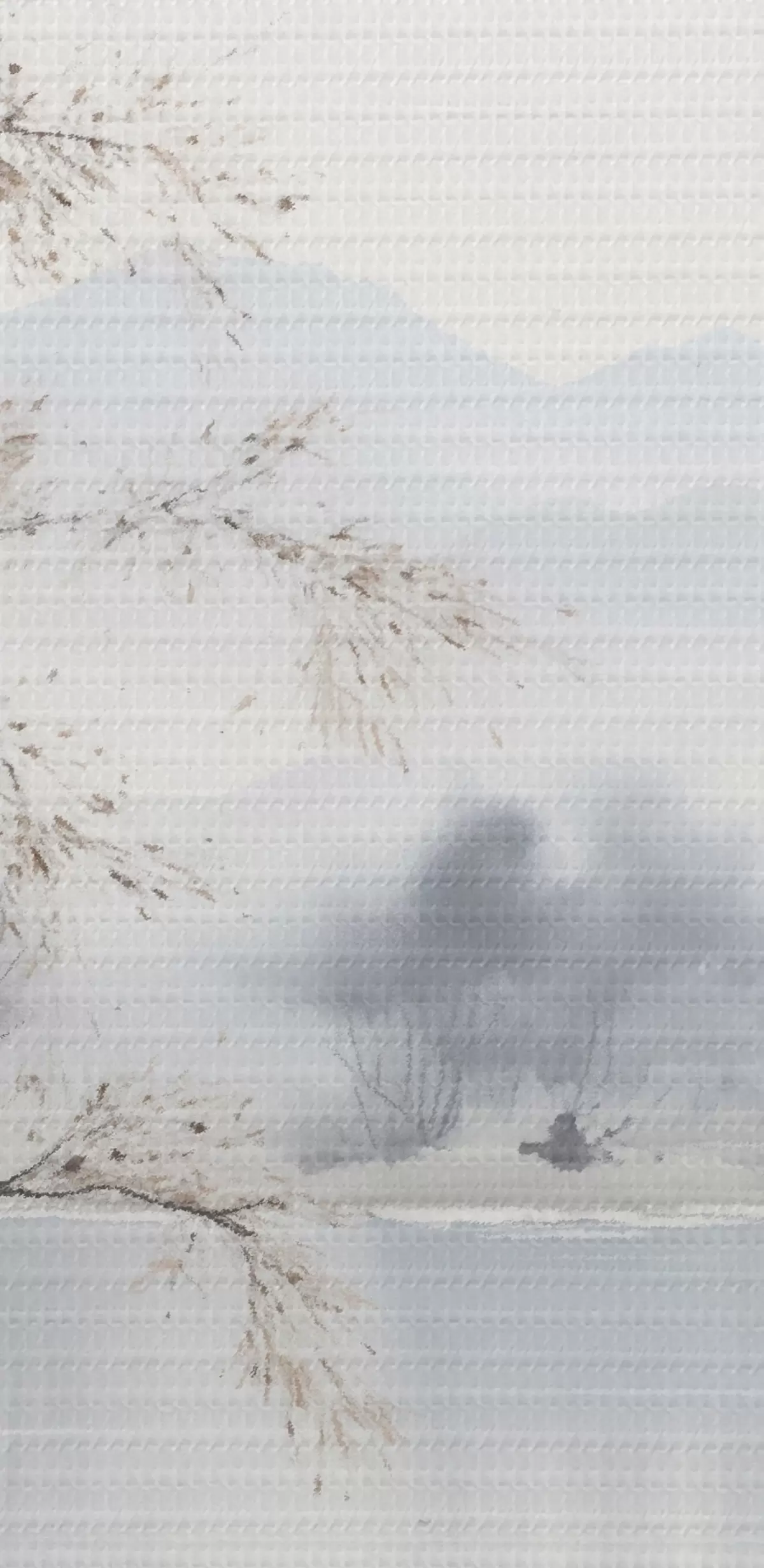 Nuotrauka Miglotas kraštovaizdis su medžiu, kalnais ir paukščiais Nr r45518