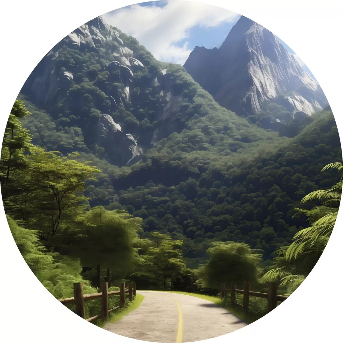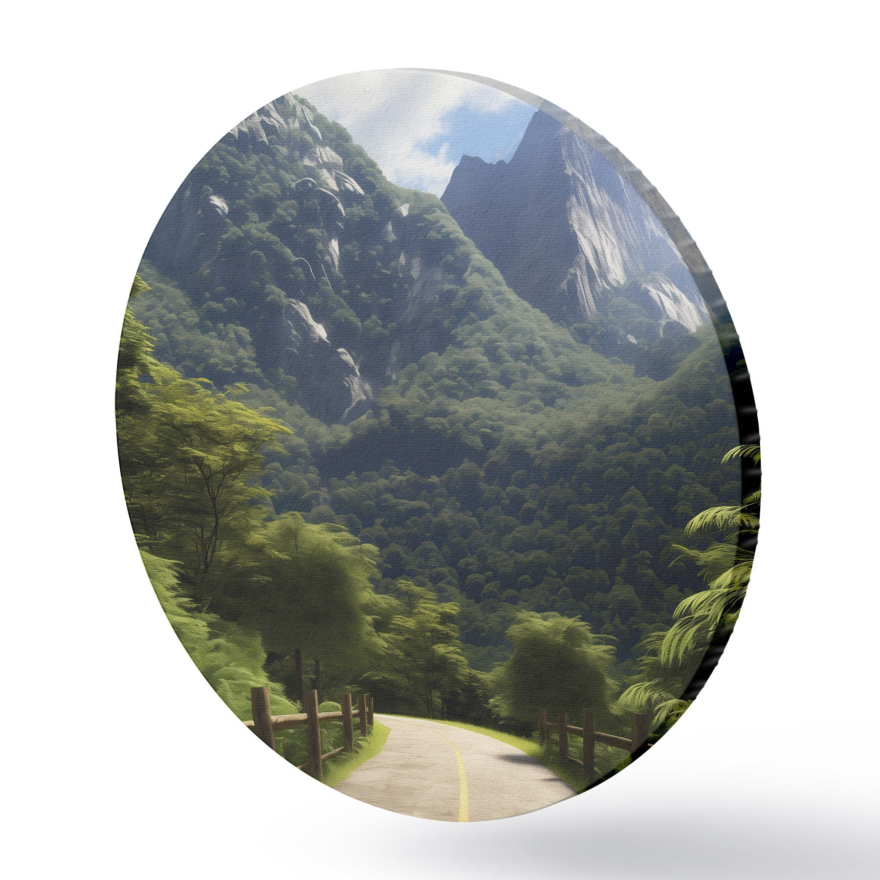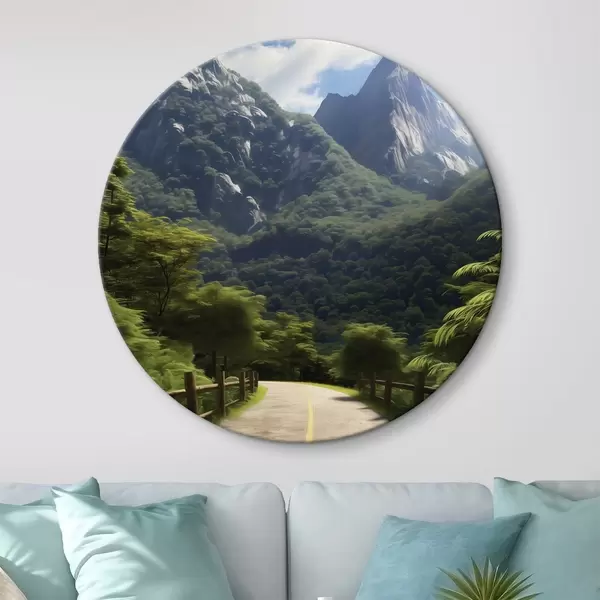 Apvalūs paveikslai Kalnų kelias tarp žalių medžių r45525