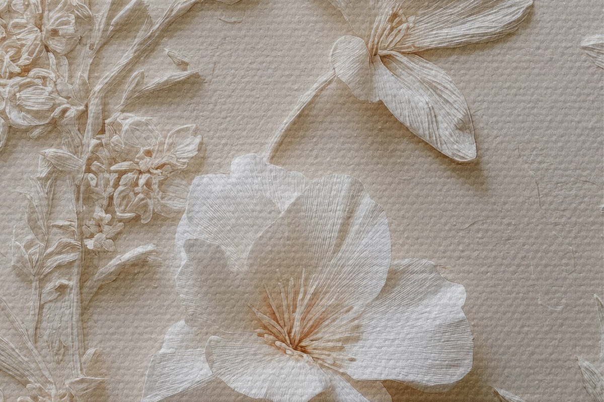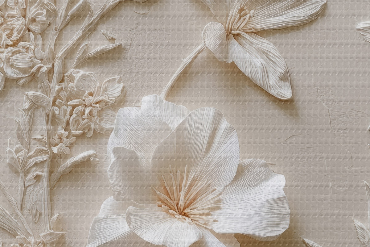 Nuotrauka Gėlių motyvas: bareljefinis stilius su augalais šviesiame fone Nr r45536