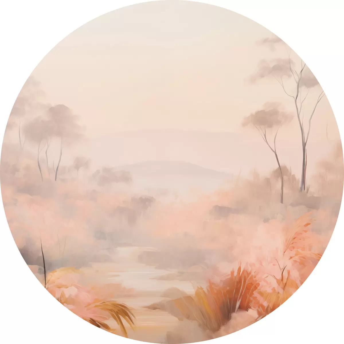 Nuotrauka Kraštovaizdis su rausvų, oranžinių ir rudų atspalvių krūmais ir medžiais, fone - kalnai Nr r45553