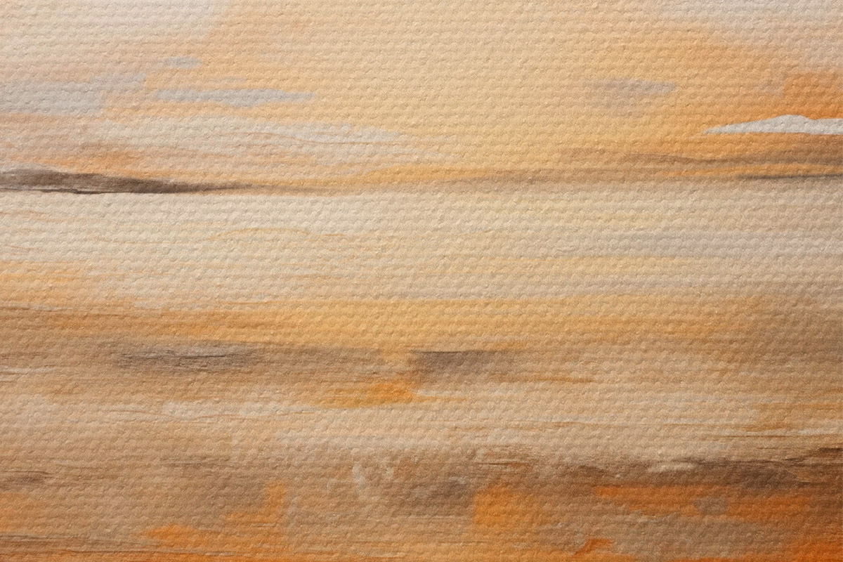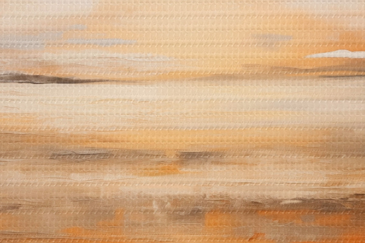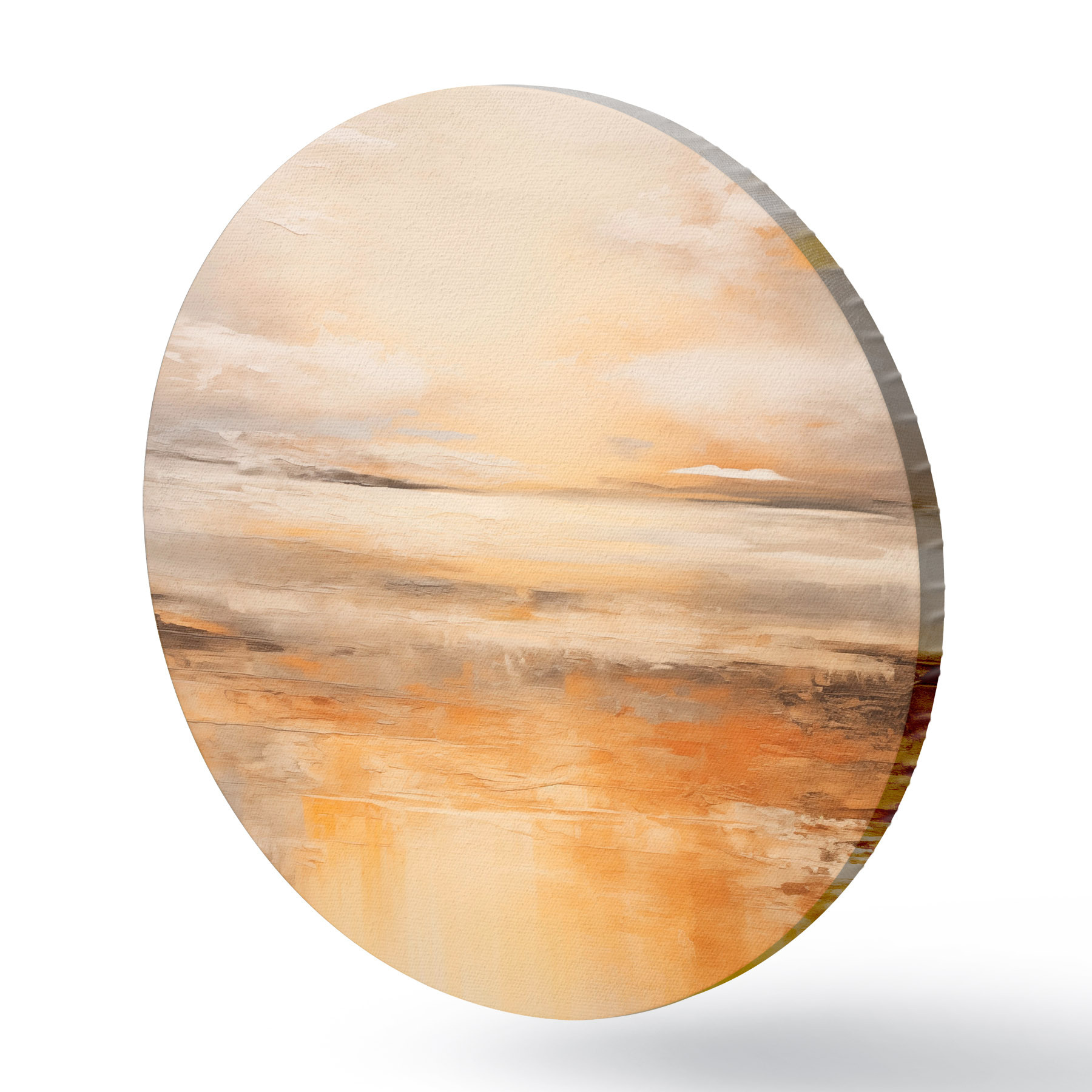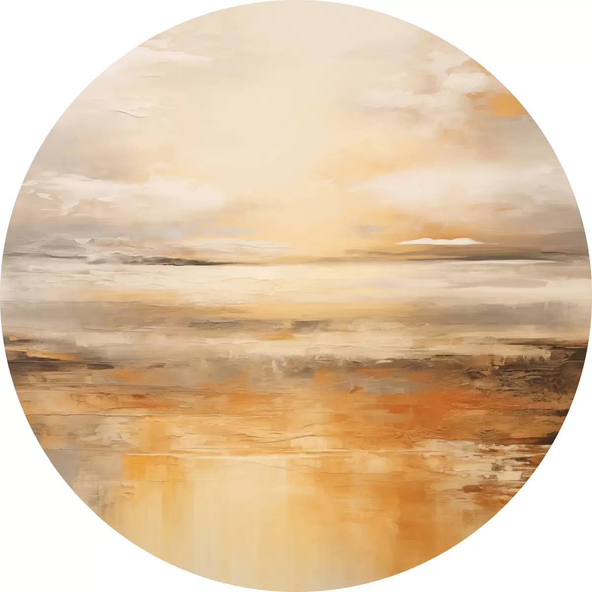 Nuotrauka Abstraktus paplūdimio peizažas su ramiu vandenynu, oranžiniu smėliu ir debesuotu dangumi su saule Nr r45567