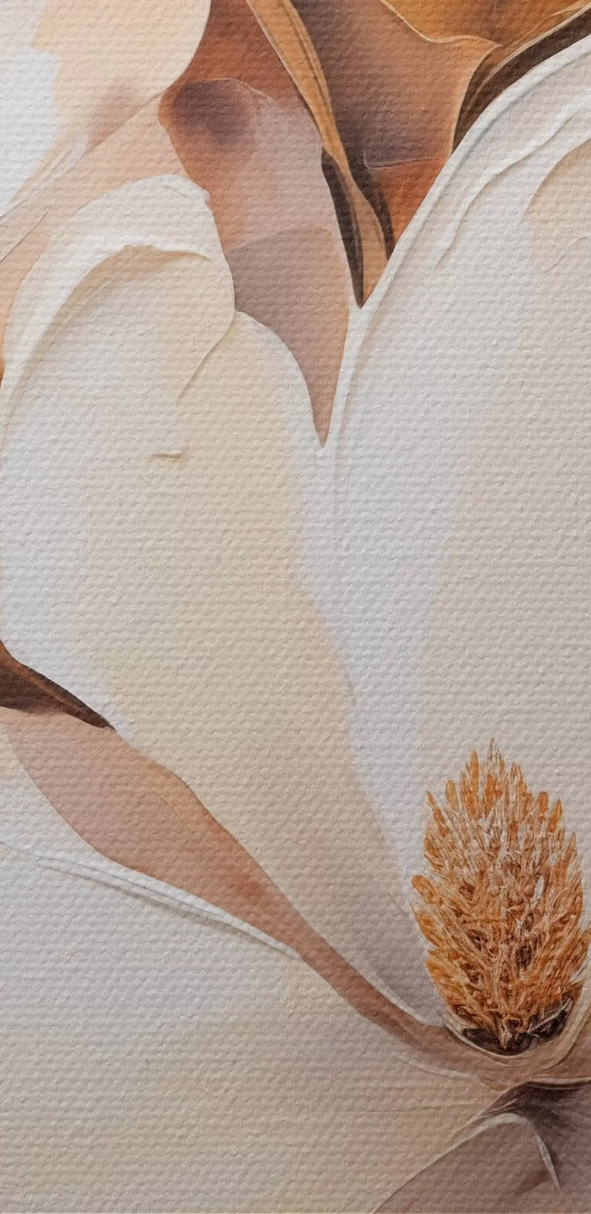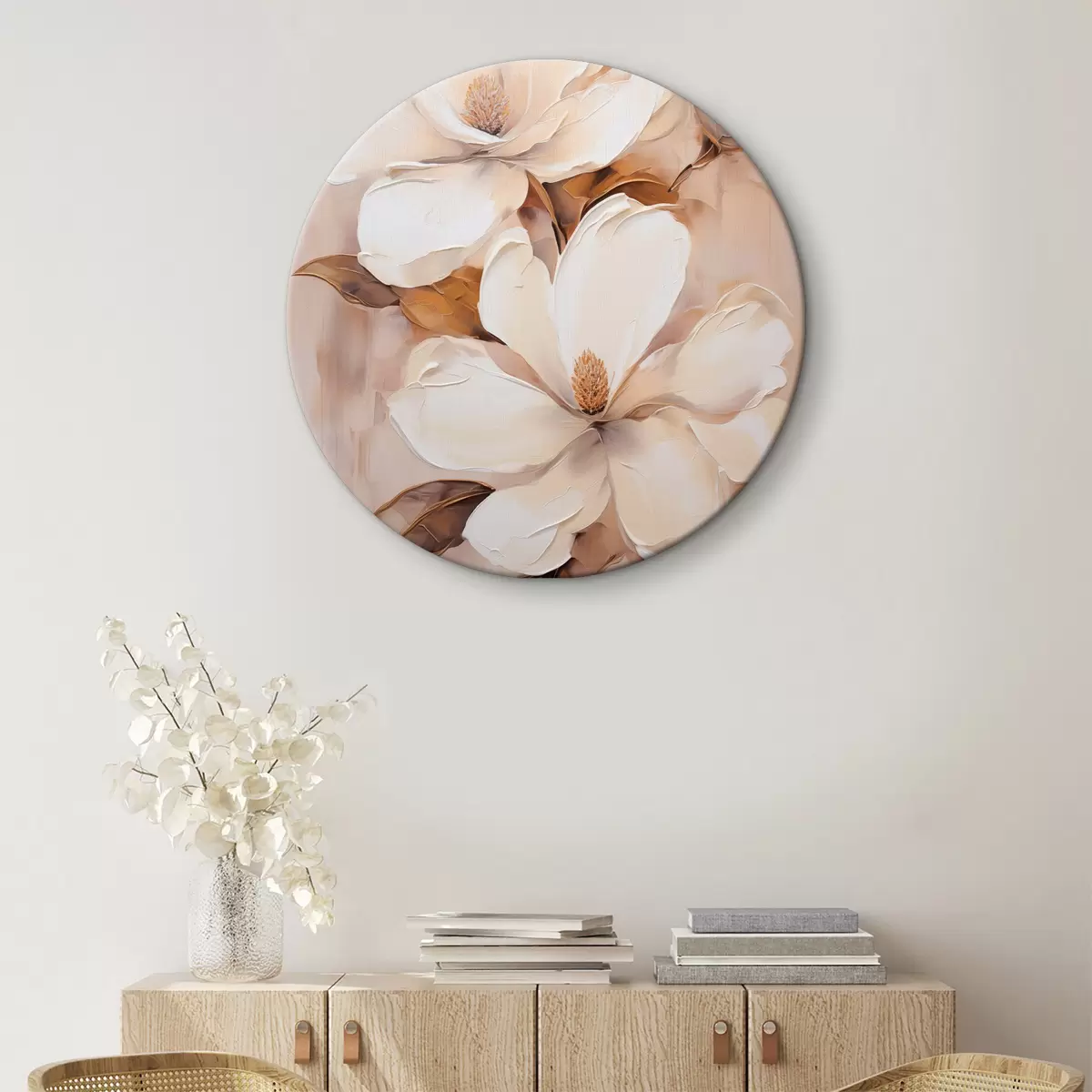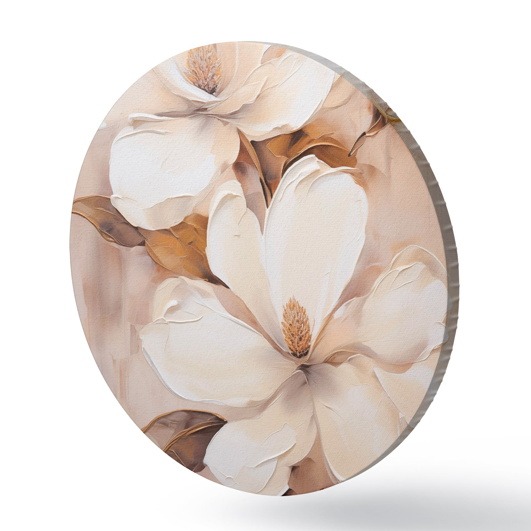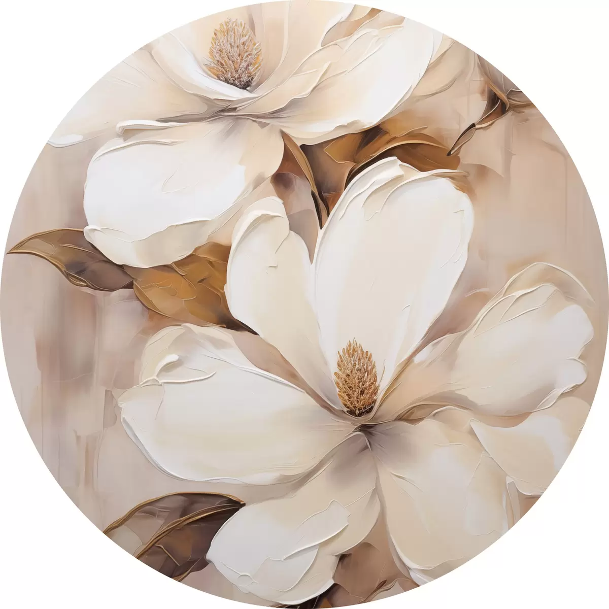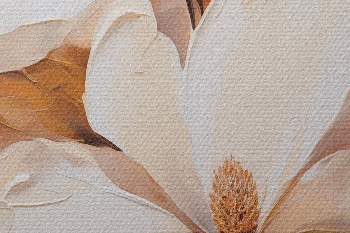 Nuotrauka Baltos magnolijos žiedai švelniame, neryškiame smėlio ir rudų tonų fone, tapybos stilius Nr r45572