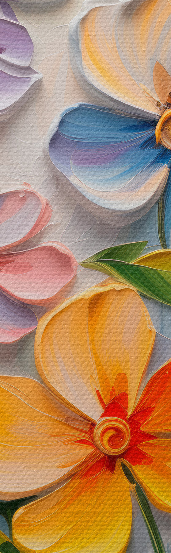 Nuotrauka Gėlių natiurmortas: įvairiaspalvės gėlės impasto technika Nr r45598
