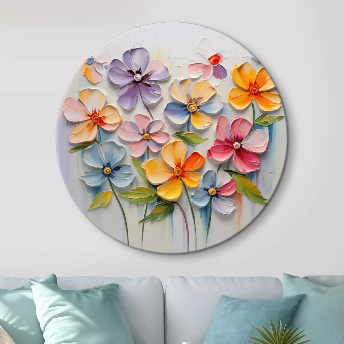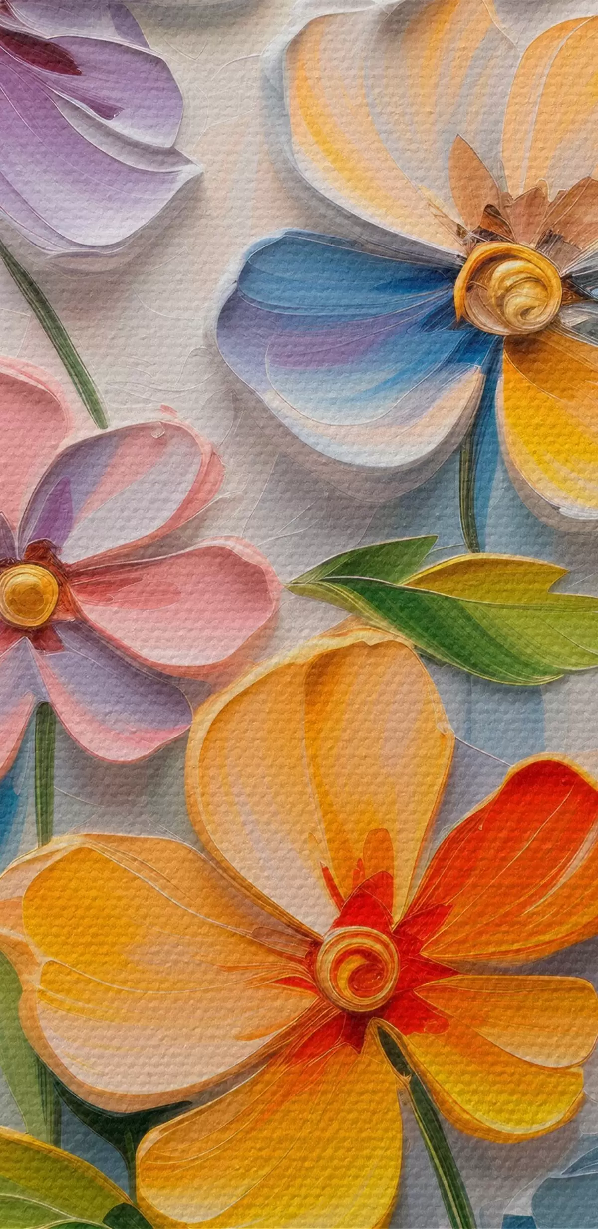 Nuotrauka Gėlių natiurmortas: įvairiaspalvės gėlės impasto technika Nr r45598