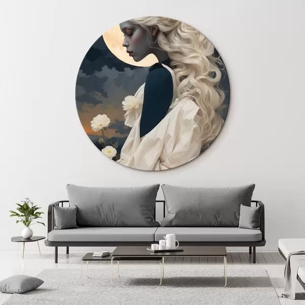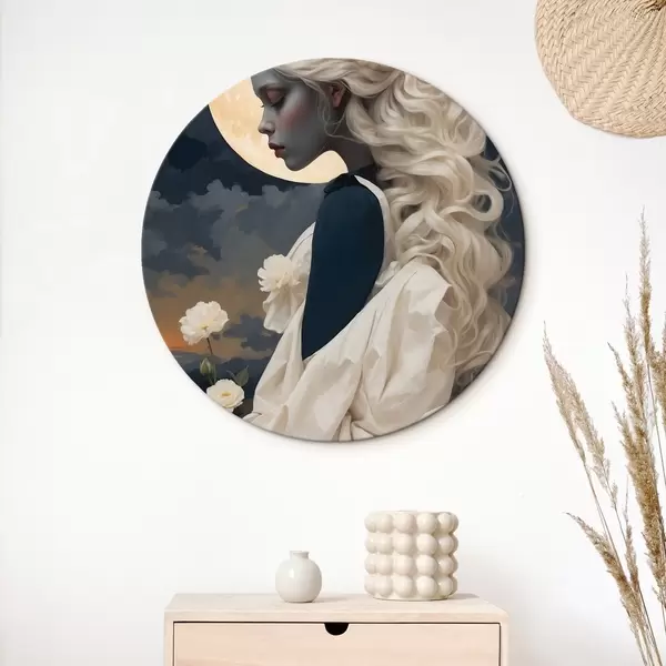 Nuotrauka Moteris baltais plaukais po mėnuliu Nr r45622